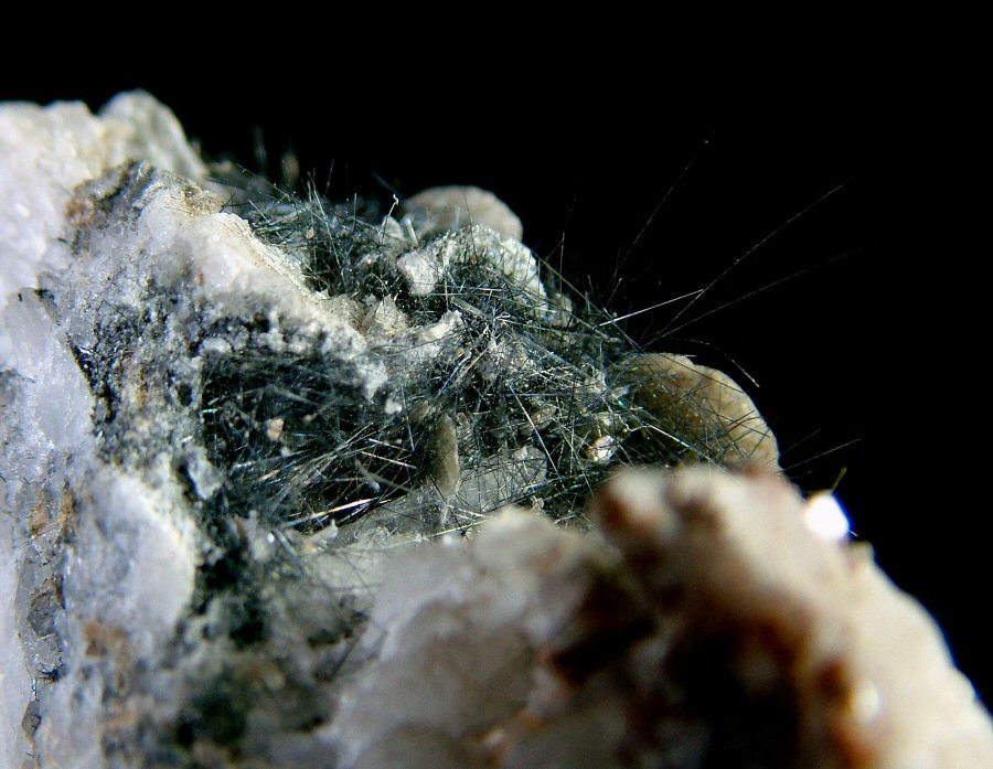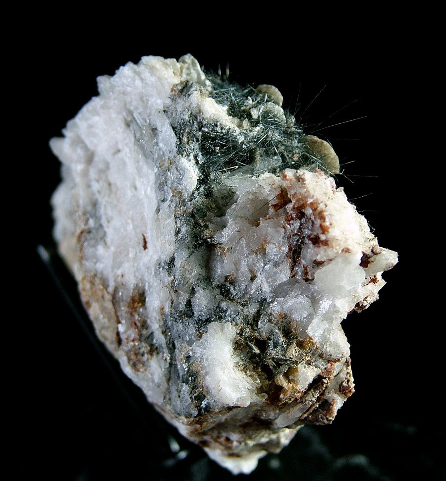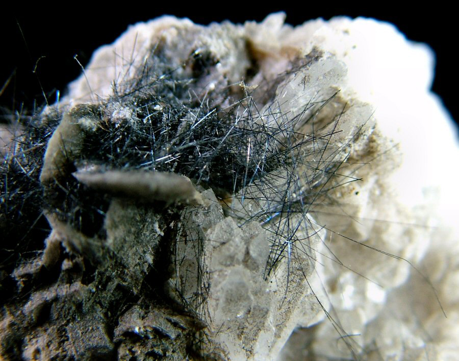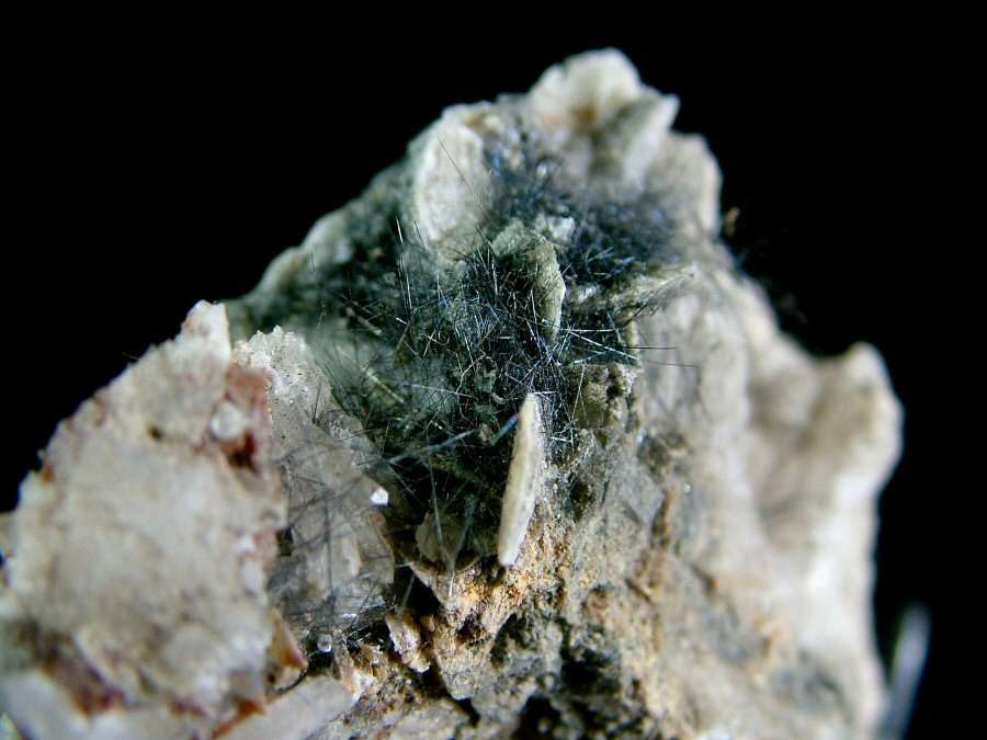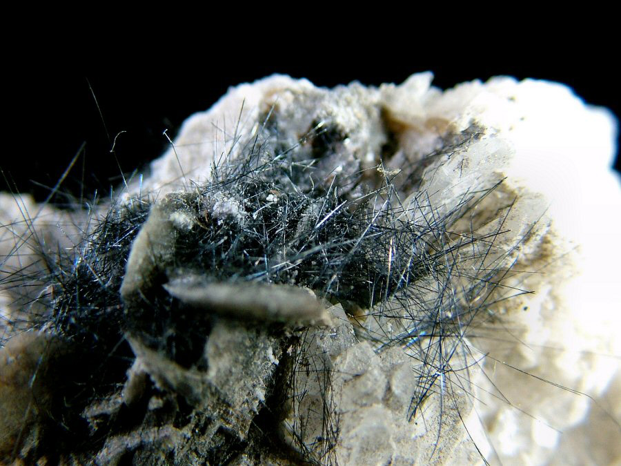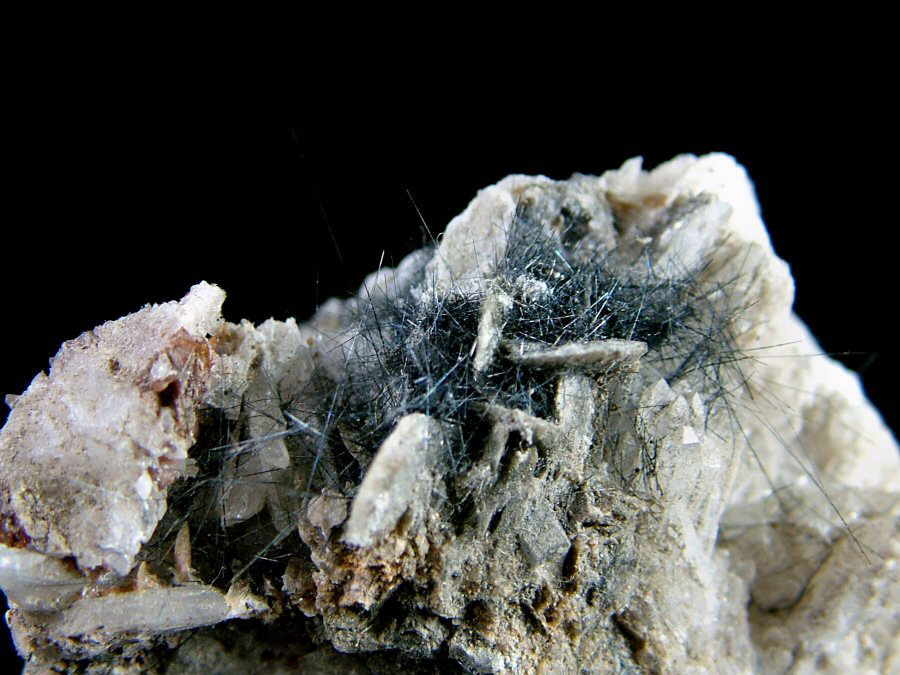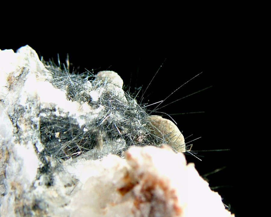 Acicular Boulangerite's crystals, like hair, with Siderite and Quartz. Typical mineral for this locality, difficult to find.