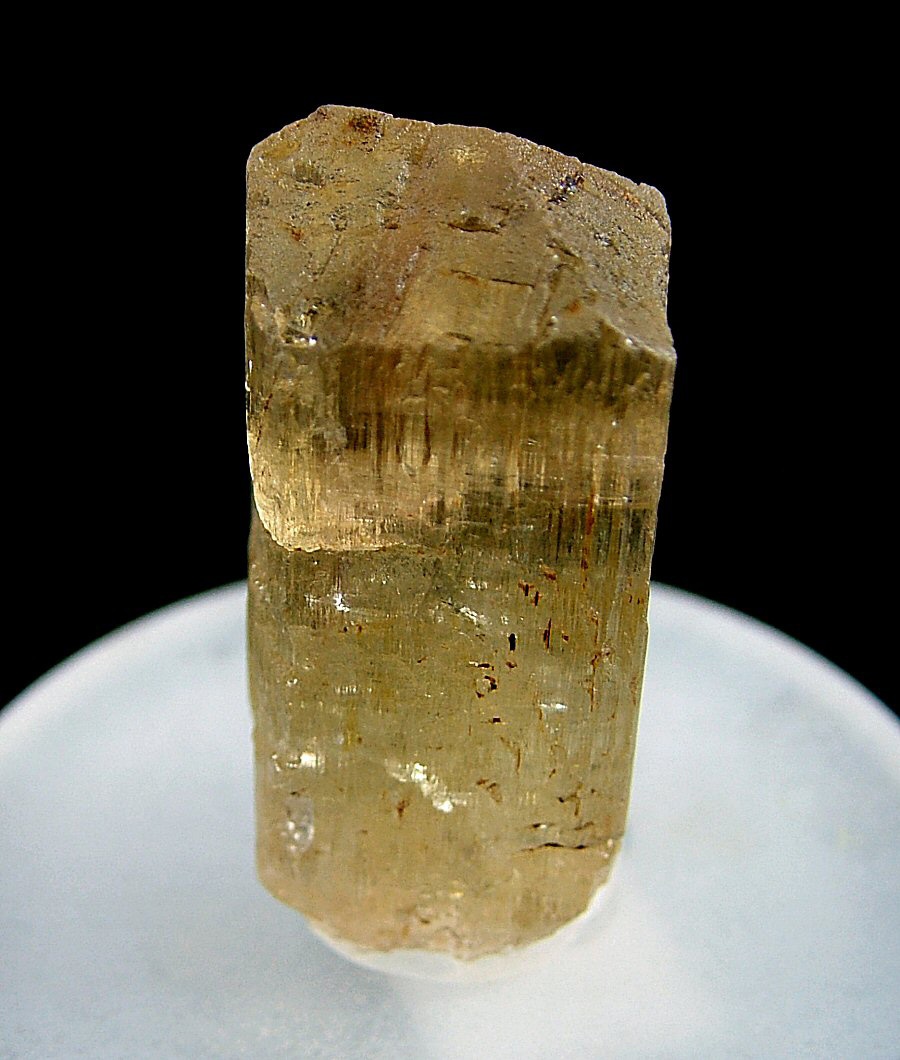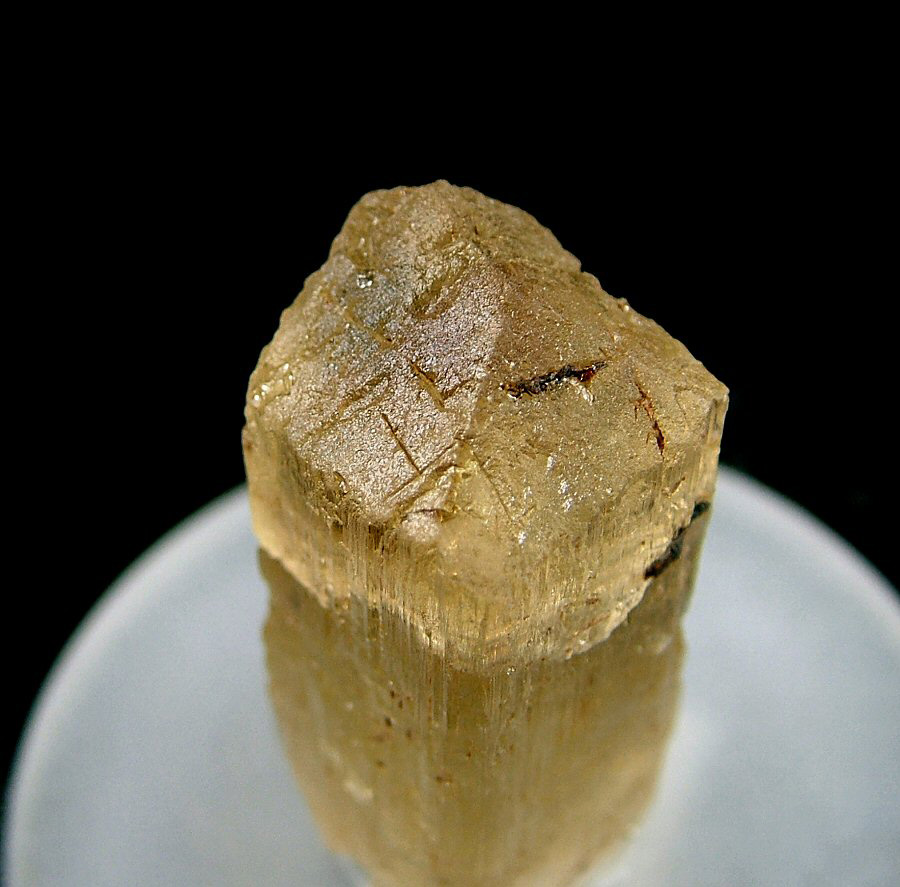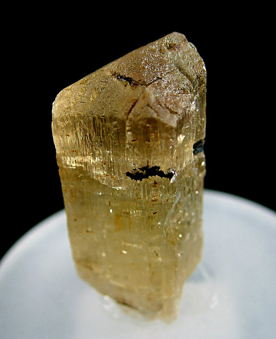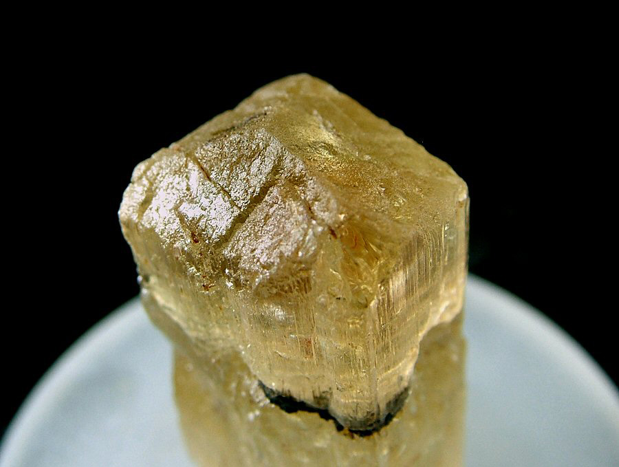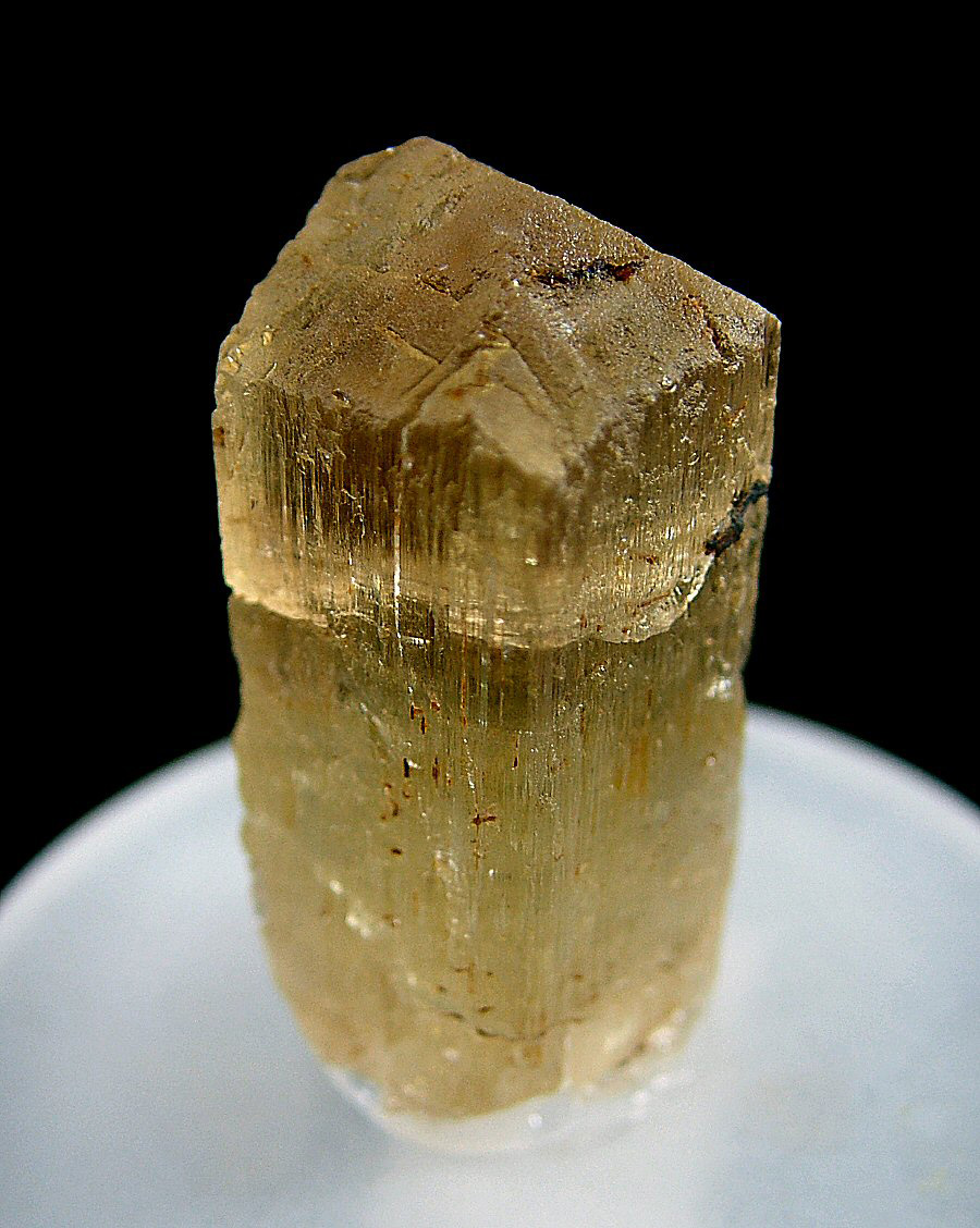 Very nice yellow crystal, gemmy, with frosted pyramidal termination faces.