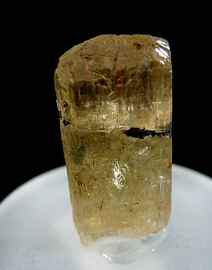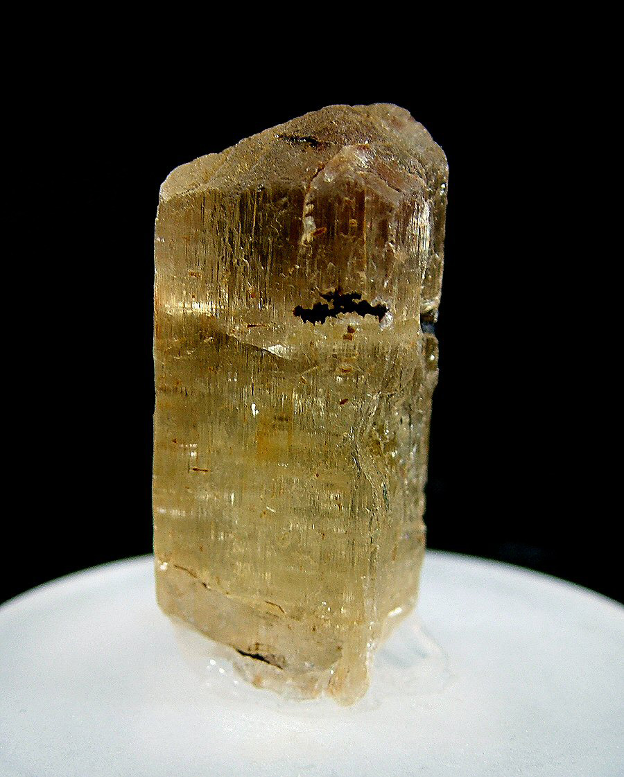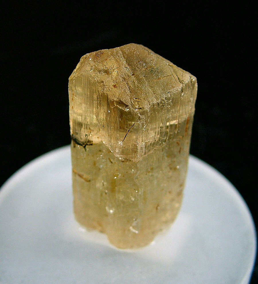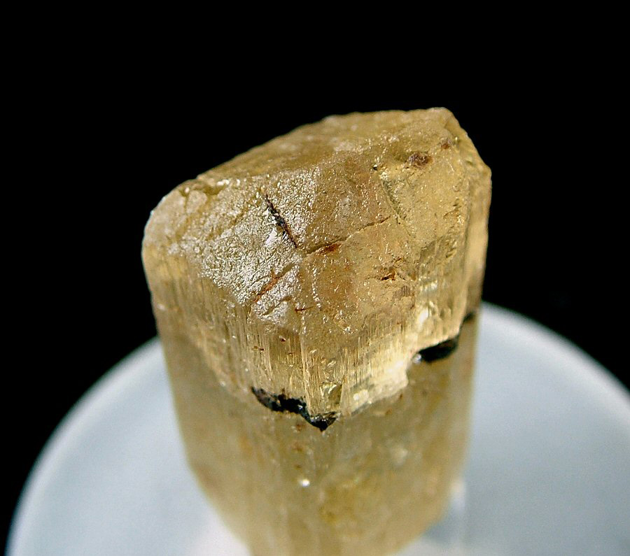 Very nice yellow crystal, gemmy, with frosted pyramidal termination faces.