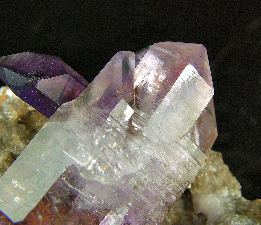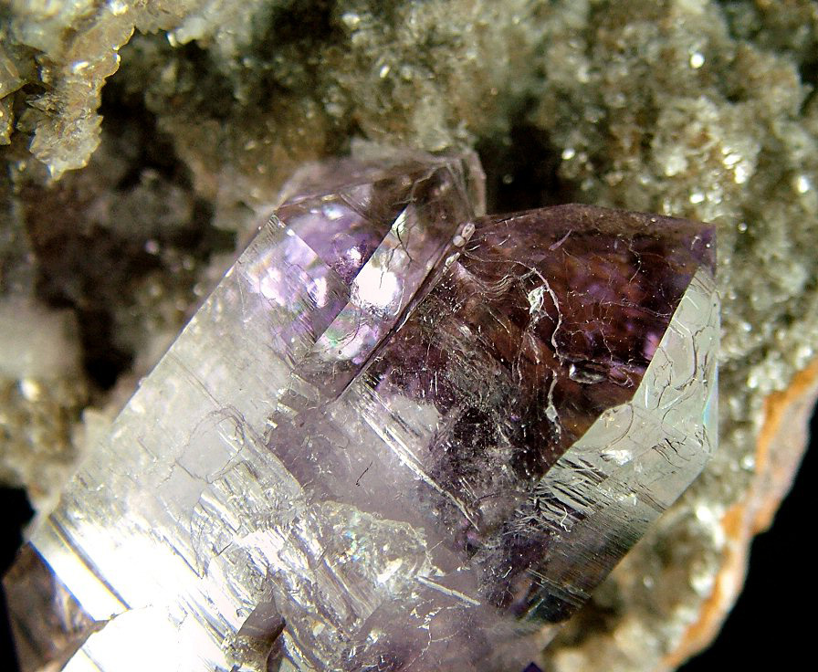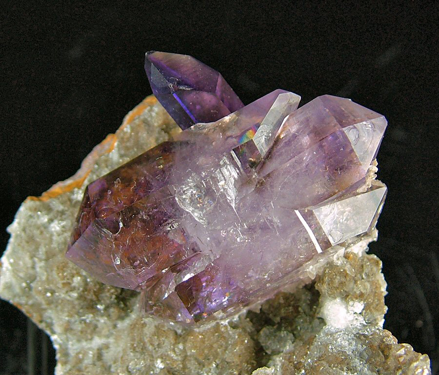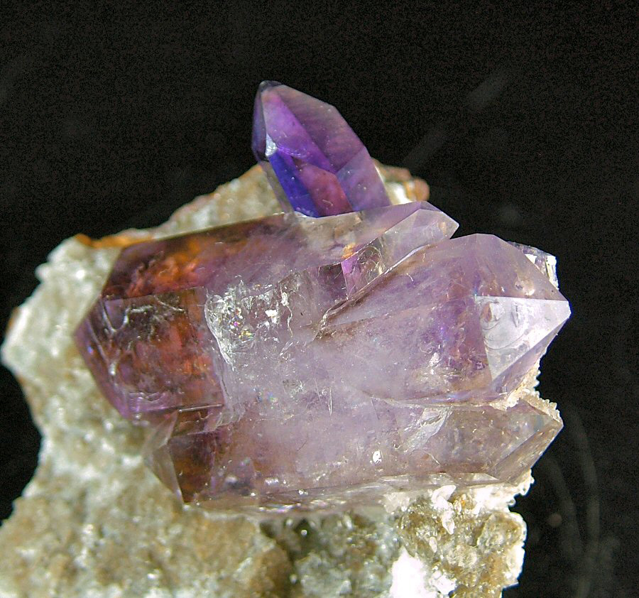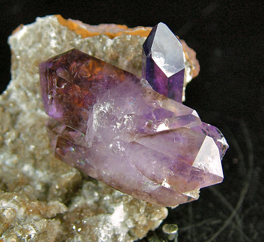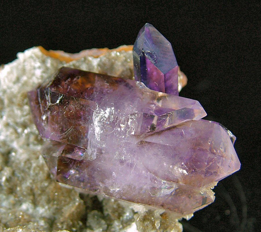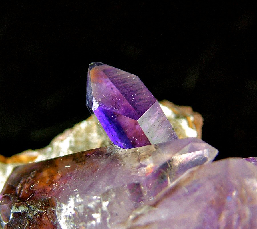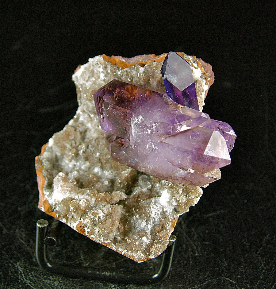 Wonderful bi-terminated Amethyst's crystal, with violet zoned color, with another smaller, intense-colored one, on a matrix that has some cuts on the rear. In excellent conditions, very nice and aesthetic.