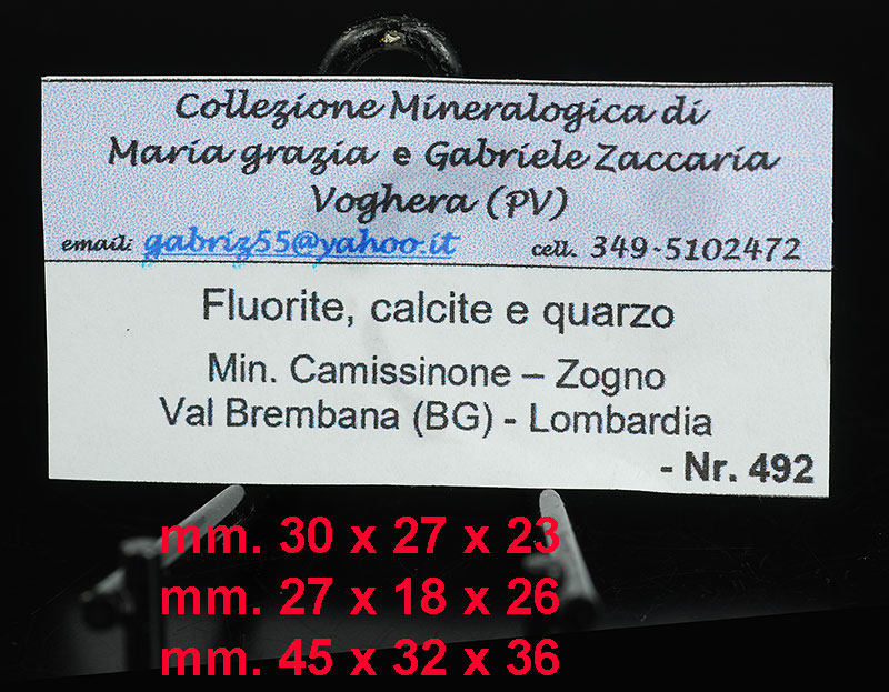 Fluorite, calcite and quartz - Camissinone mine - Zogno - Brembana Valley - Bergamo prov. - Lombardy - Italy (#:GM22057)