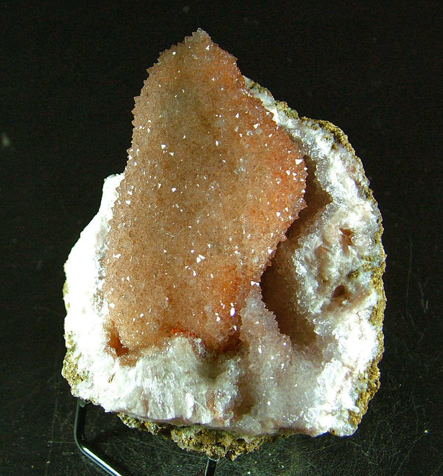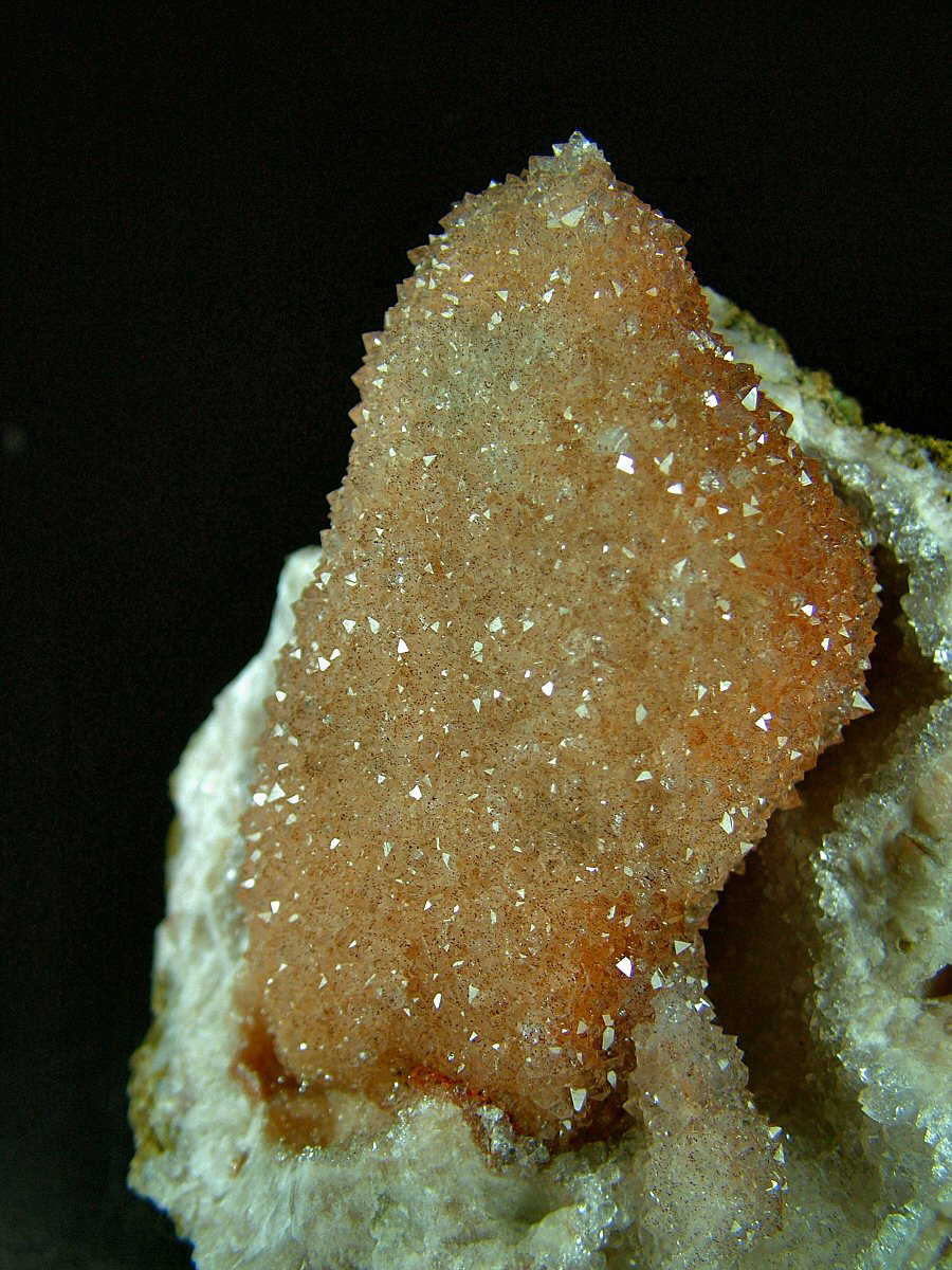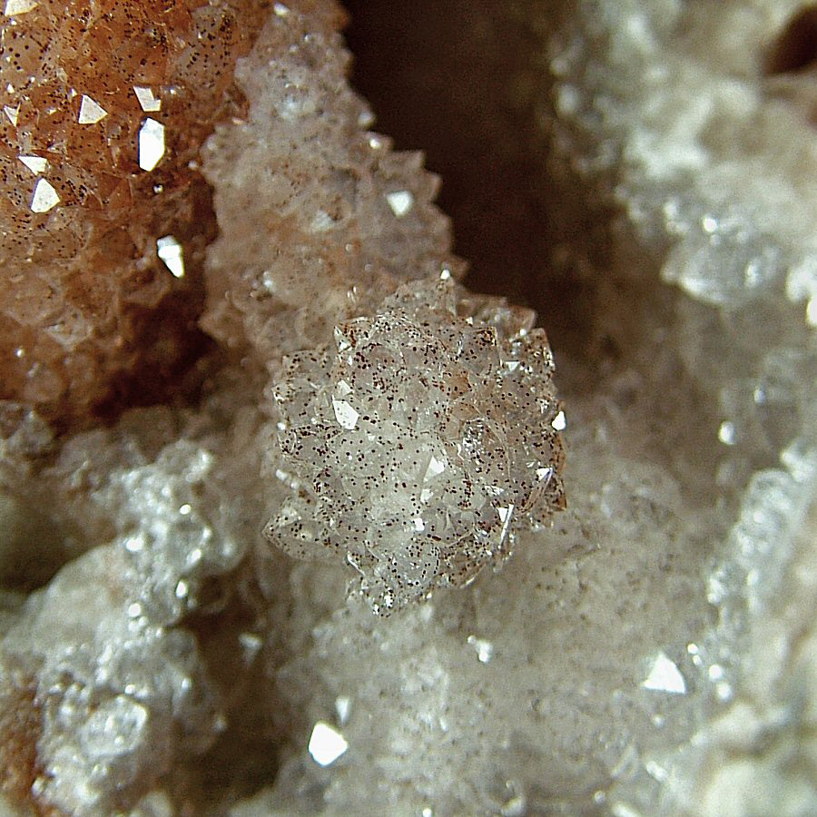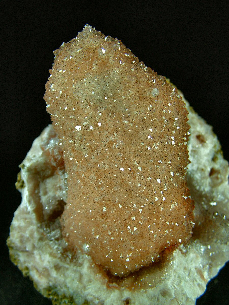 Chalcedony's microcrystals have completely replaced another mineral, whose identification isn't possible. Very brilliant and aesthetic, photographed under strong light.