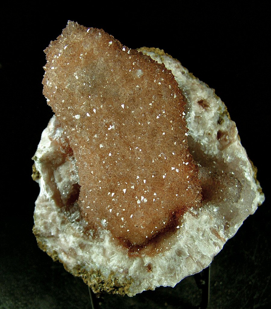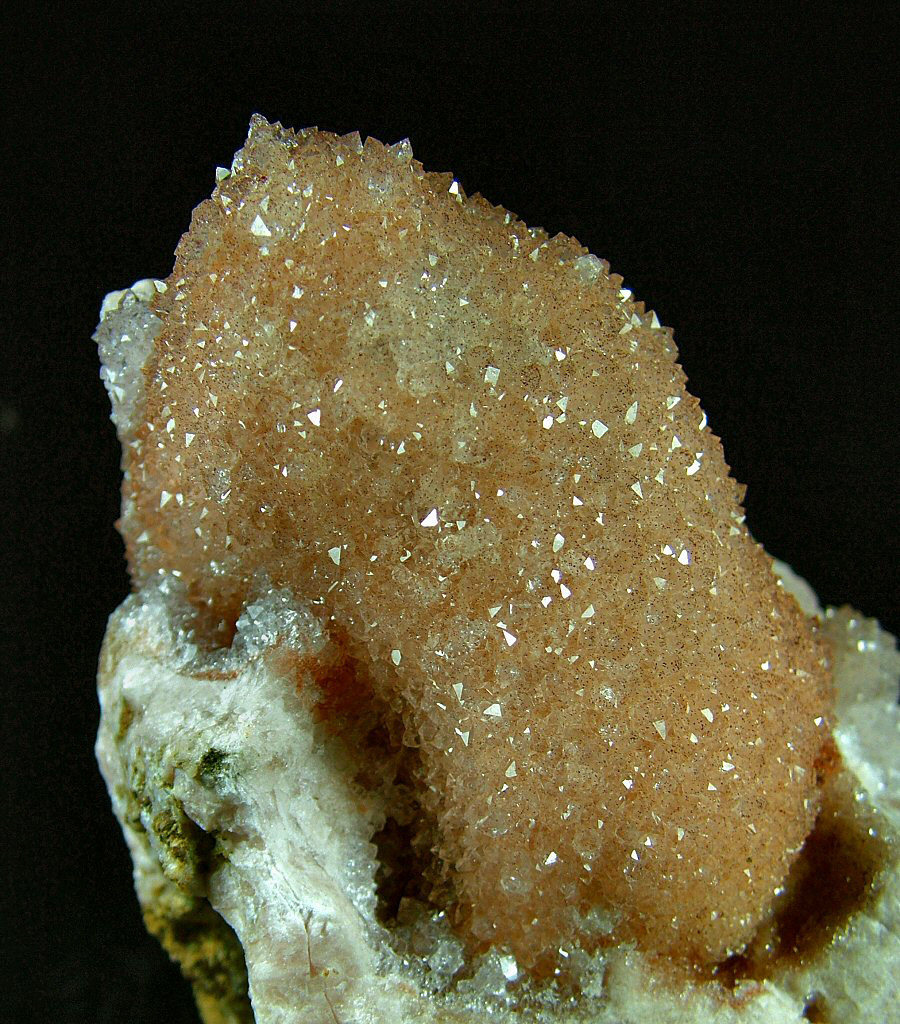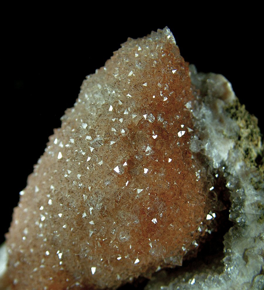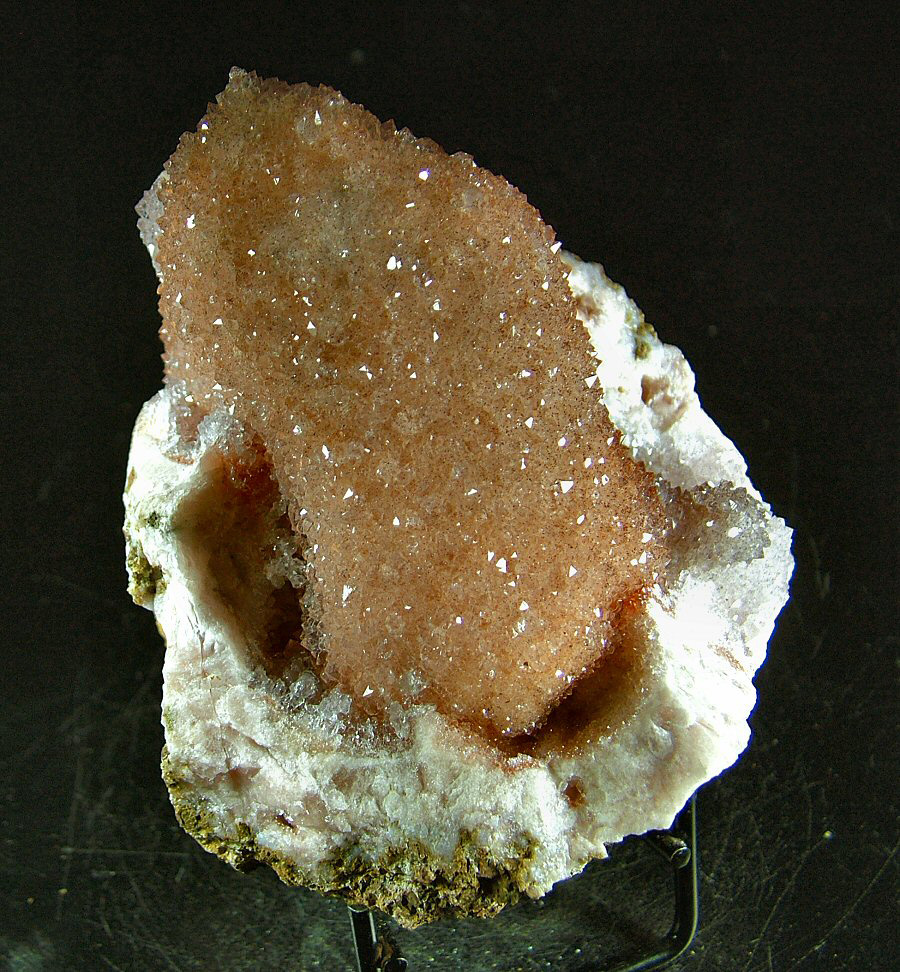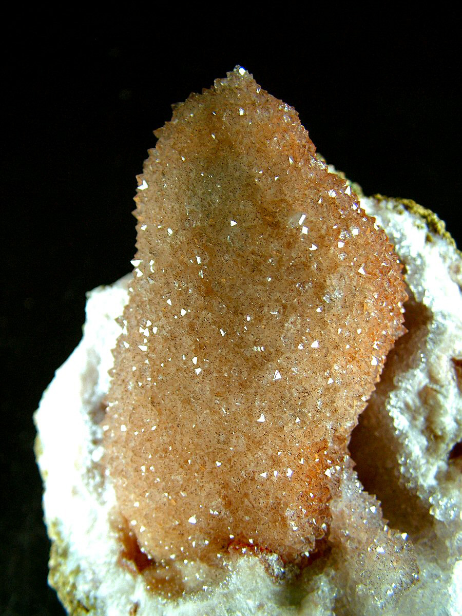 Chalcedony's microcrystals have completely replaced another mineral, whose identification isn't possible. Very brilliant and aesthetic, photographed under strong light.