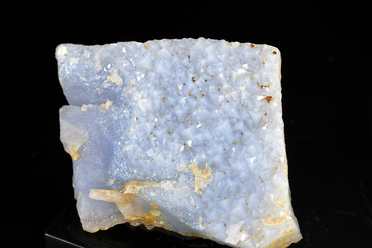 A classic , plate of lustrous, pretty pastel-blue chalcedony pseudomorph after sharp fluorite cubes from Romania. Psudos of this quality are uncommon on the market.