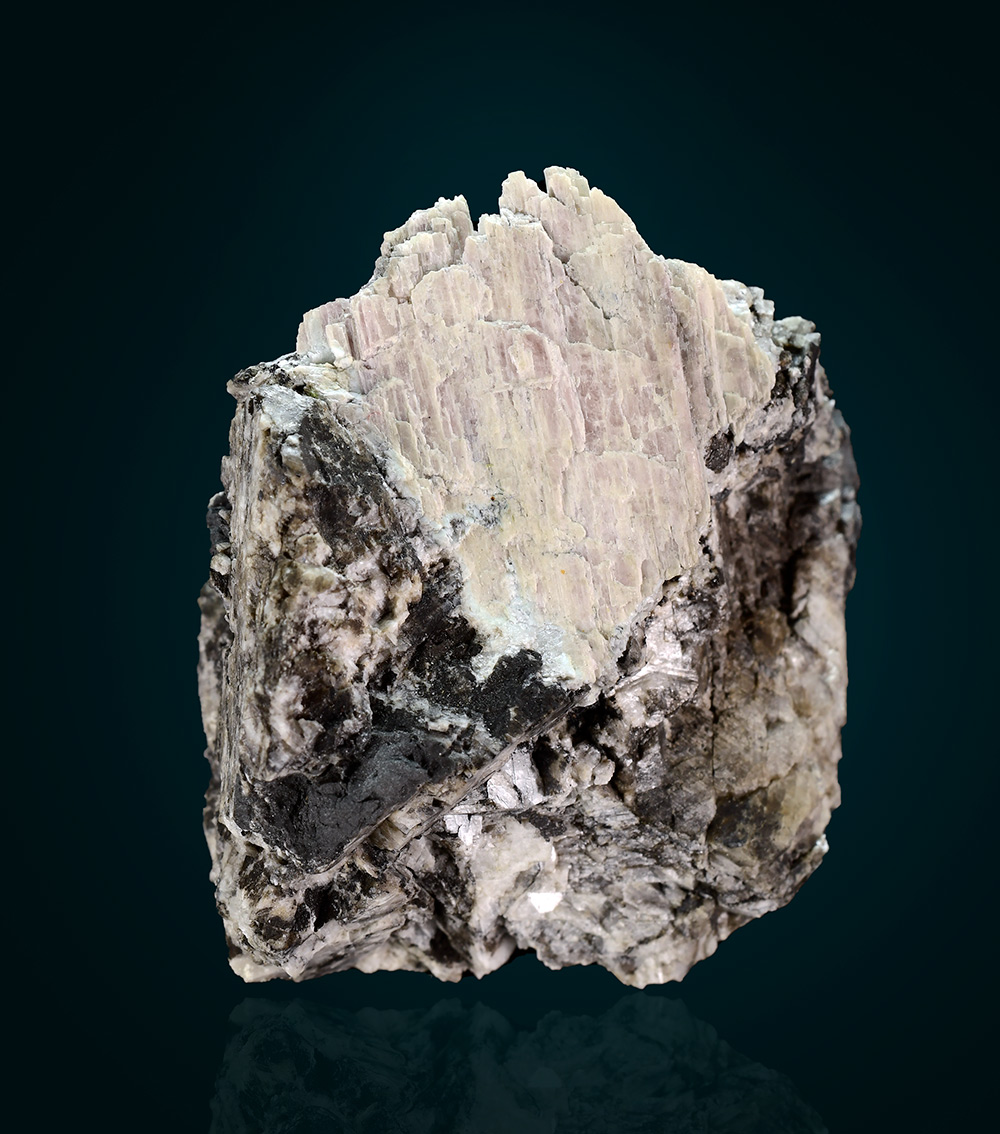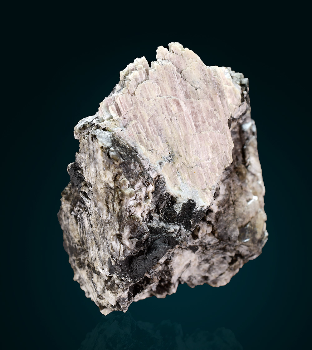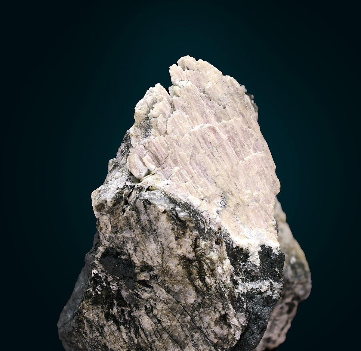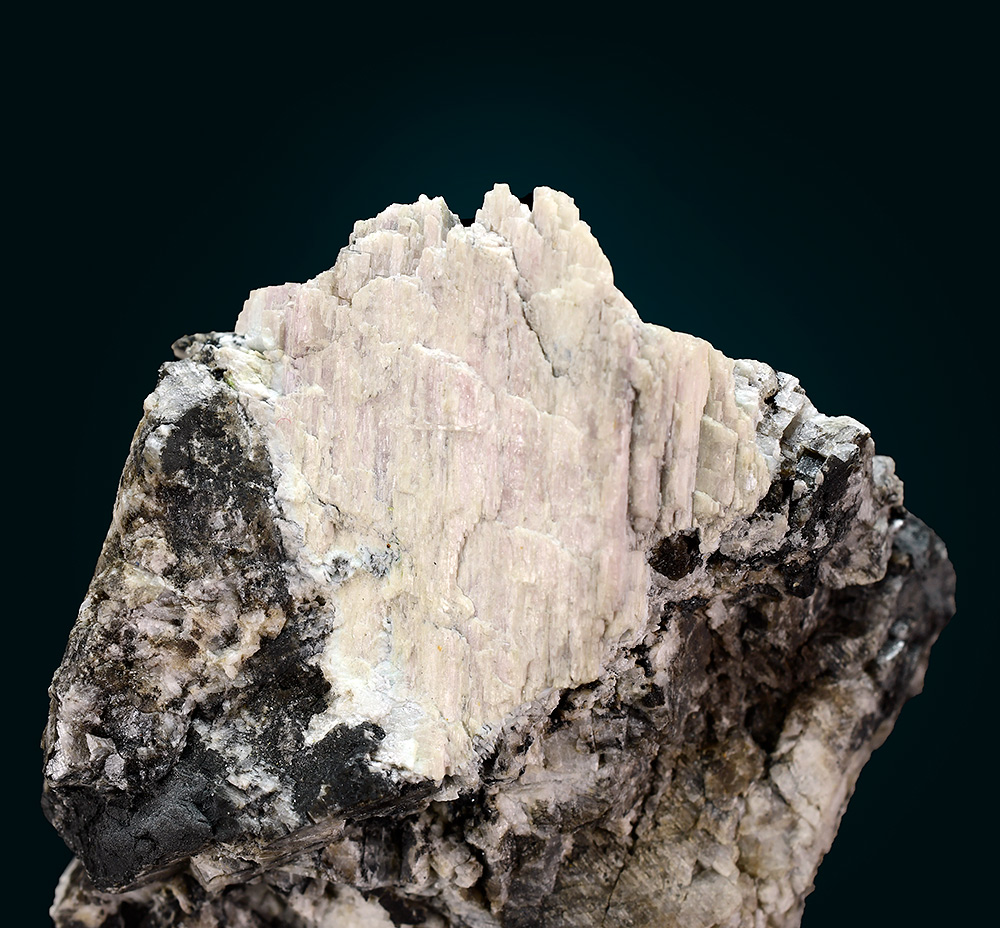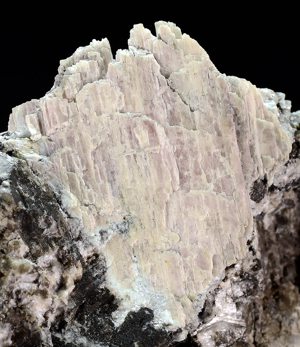 Pale yellow to pale pink columnar aggregates of mendipite, on a matrix consisting of dark manganese oxides. Rare!