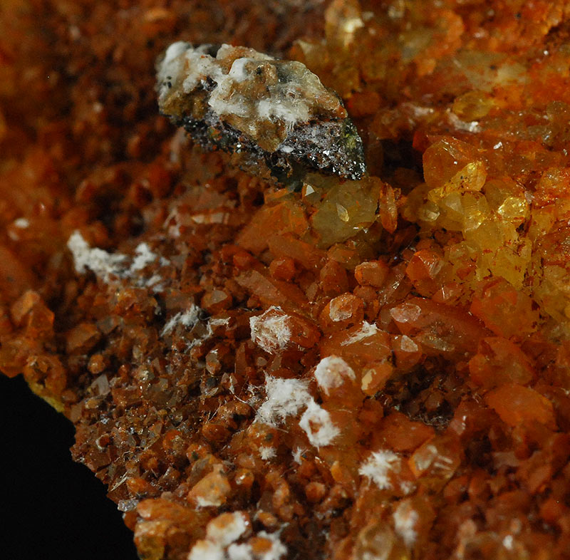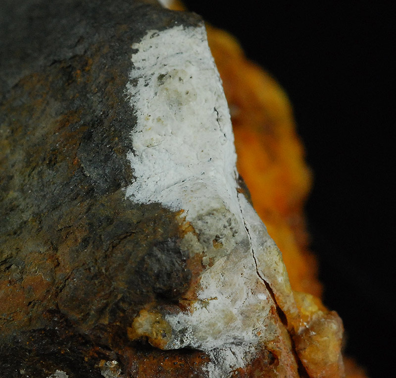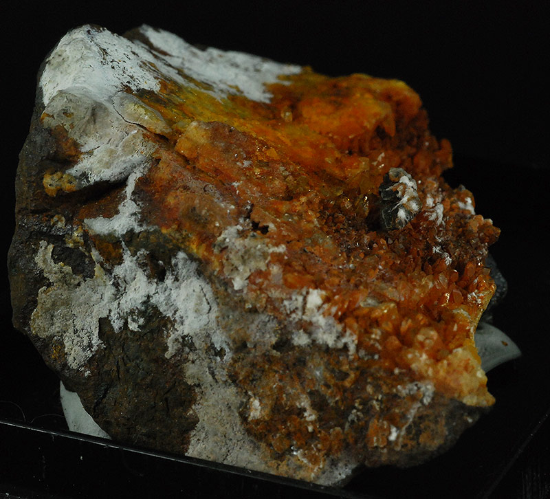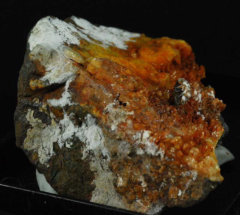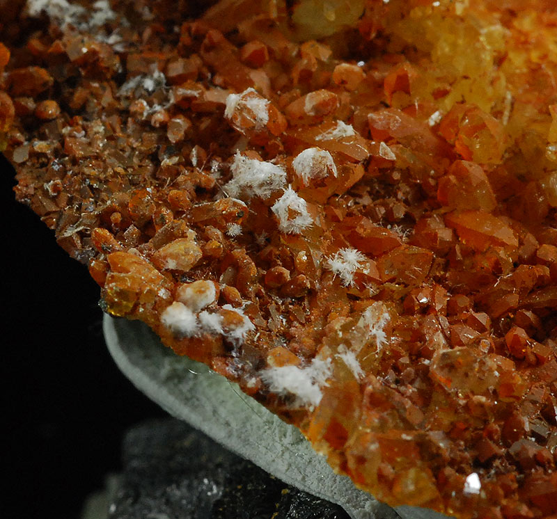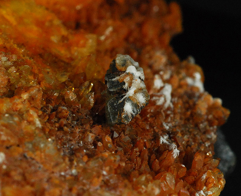 This specimen is partially covered by a white patina of rapidcreekite. In an area there are some minicurls of this rare sulfate.