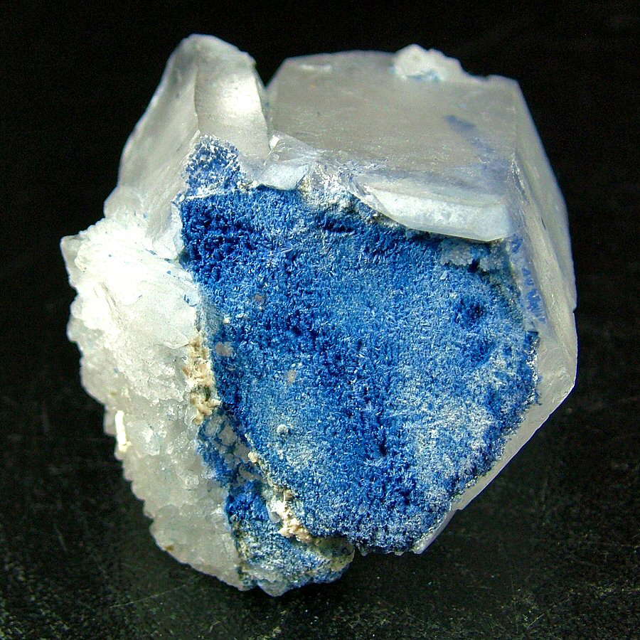 A myriad of Dumortierite's crystals with a nice intense blue color are included in the Quartz and cover it partially. Sample coming from an inactive locality, therefore rare on the market by now. Photographed under strong light.