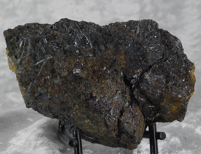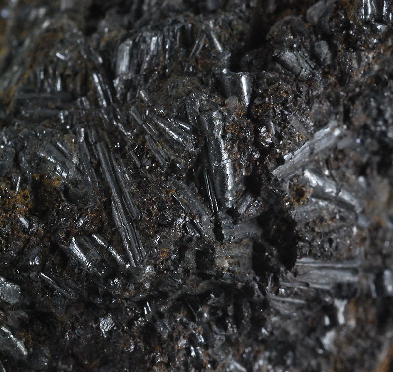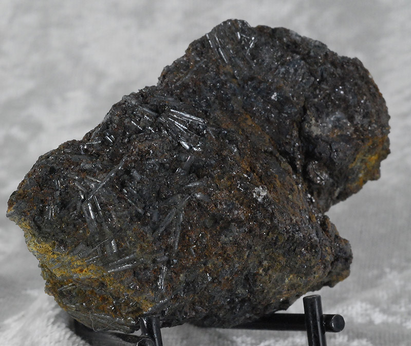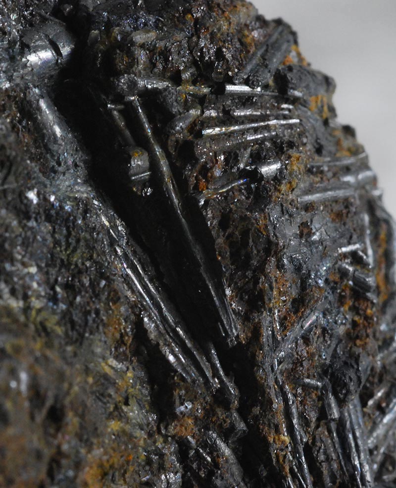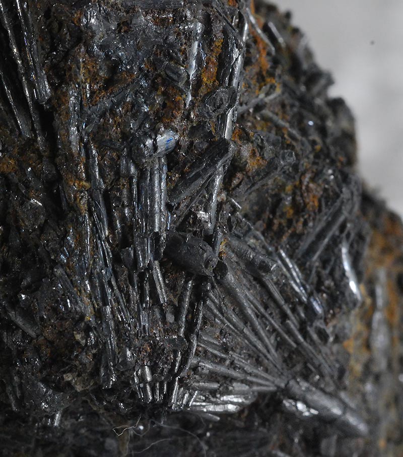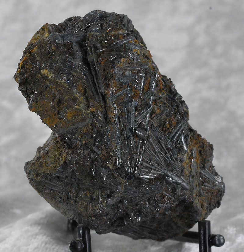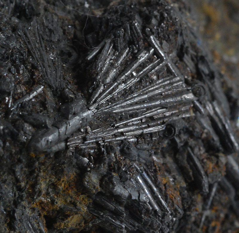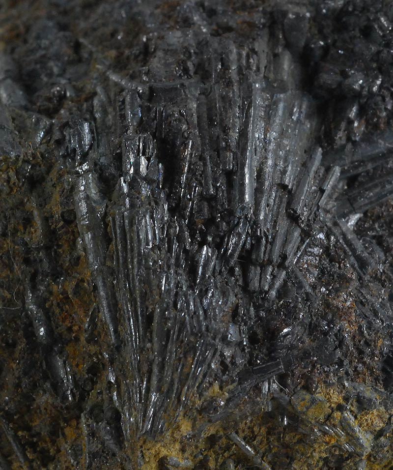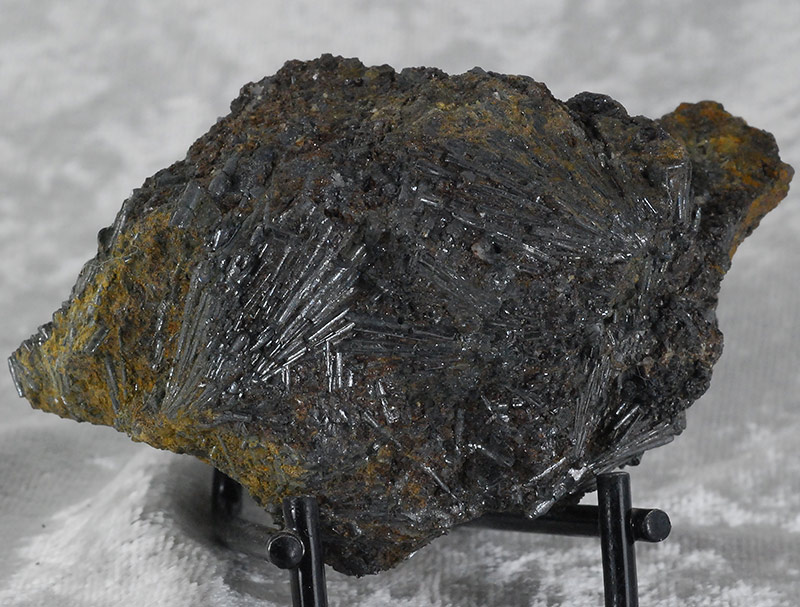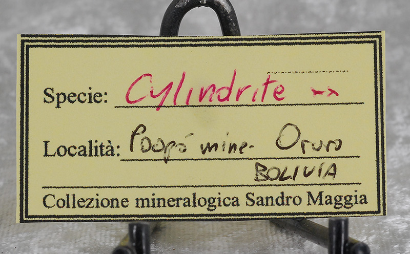 Numerous long acicular crystals of cylindrite are arranged all around the sample, some even forming small fans. It is one of the very few minerals that crystallizes in round needles and is a rather rare sulphate. Former collection of Sandro Maggia, with the original ticket.