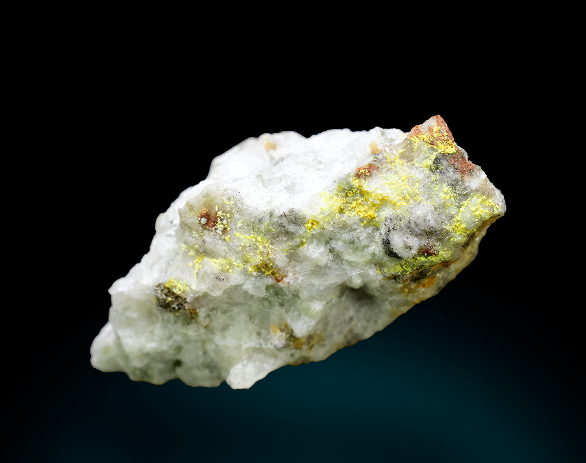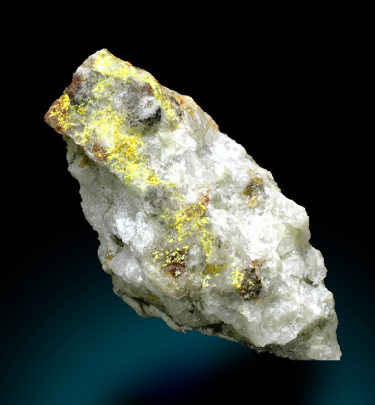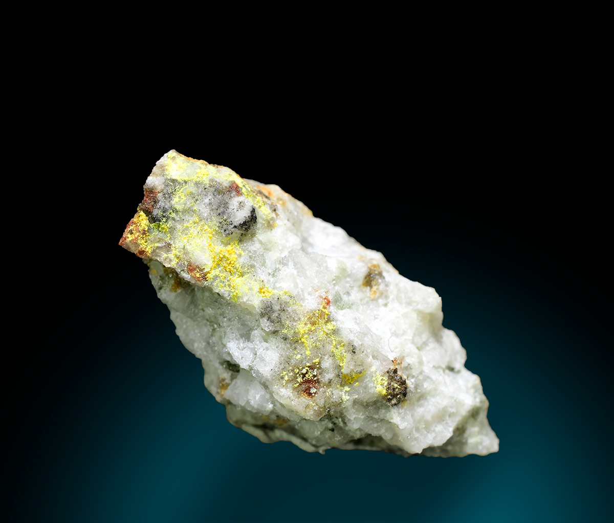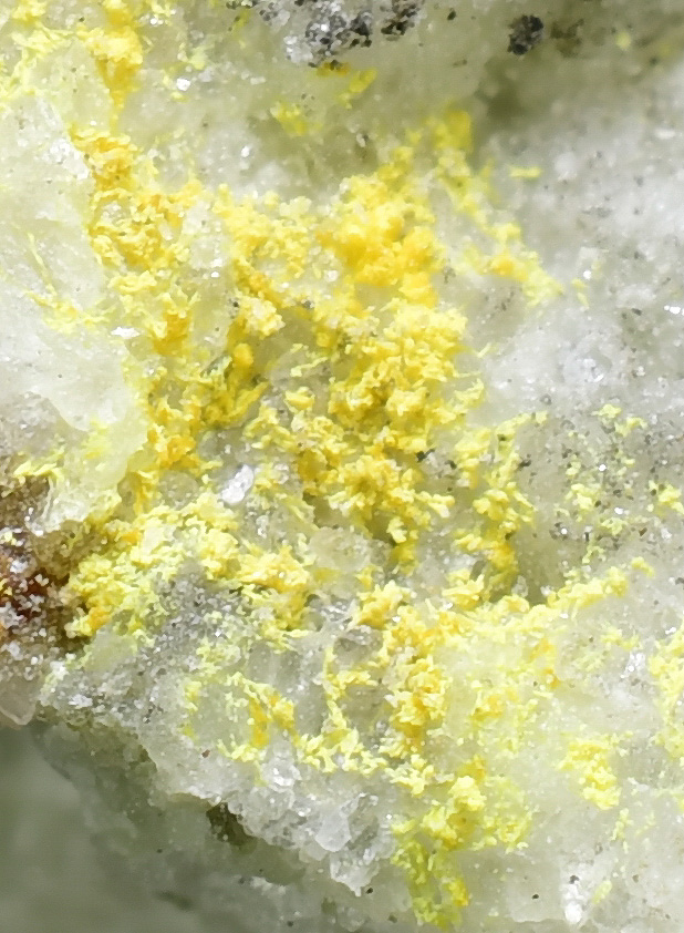 Specimen with vivid yellow sub-mm Bayleyite crystals on matrix.