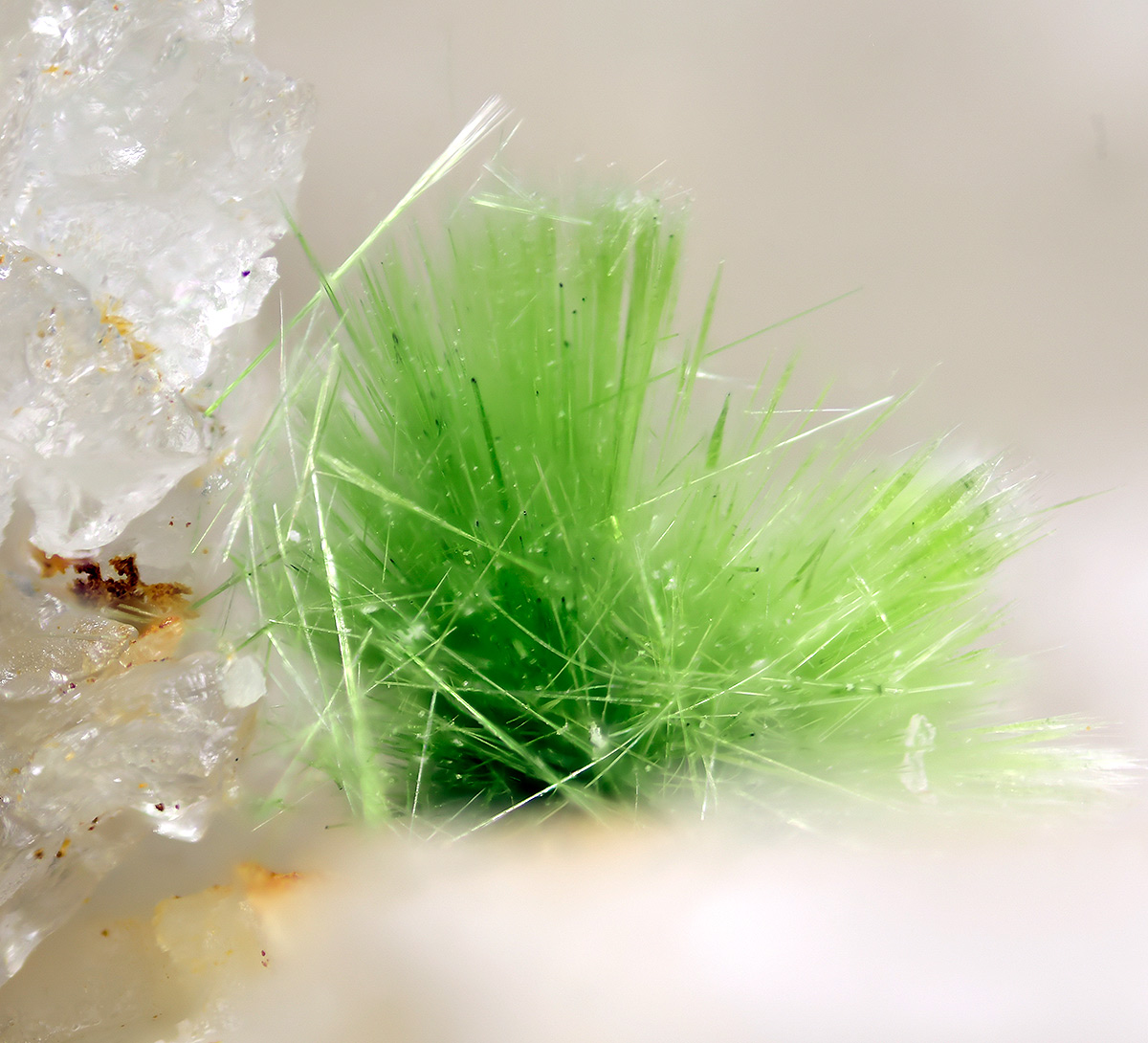 Cluster of apple-green radiating sprays of Agardite-(Ce) on baryte matrix.