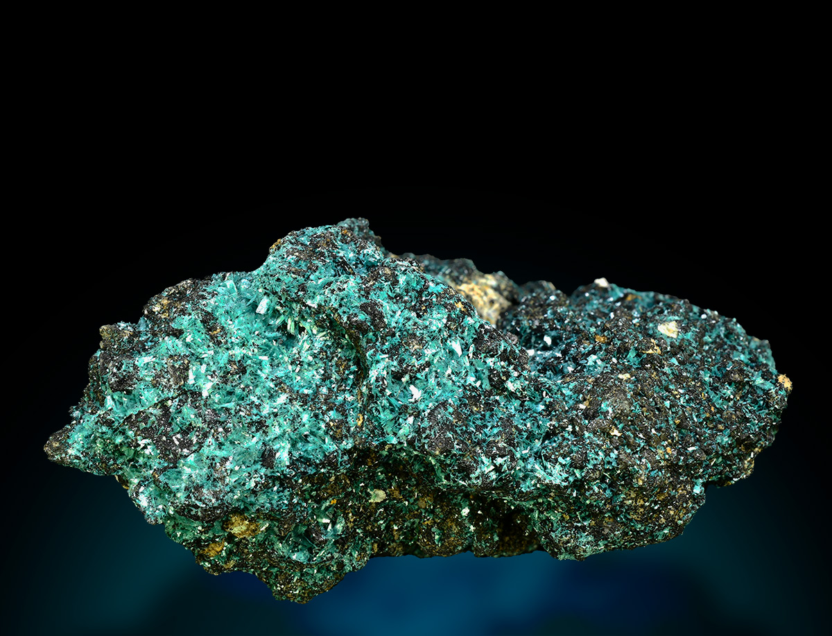 Bright blue/green crystals of Botallackite on all sides of specimen. Botallackite is a rare secondary copper mineral and this is a very rich example from recent finds at Cligga Head.