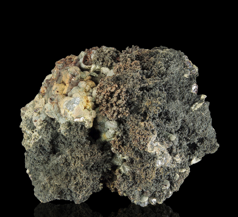 Most interesting specimen offering Sphalerite xx, Galena xx and dendritic Silver. A classic trio.