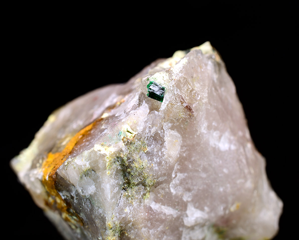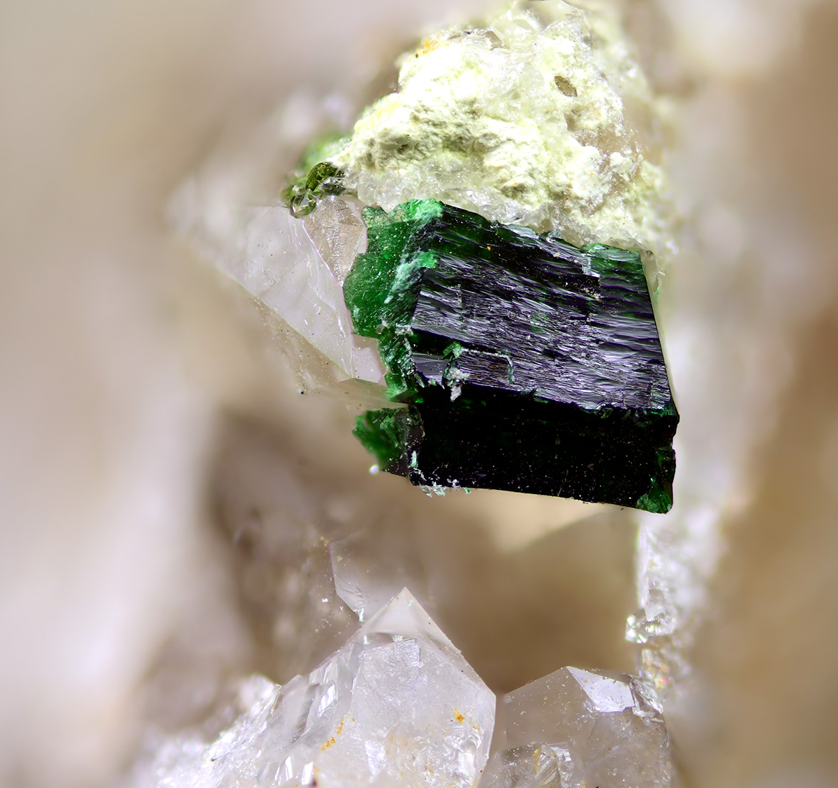 Emerald green Namibite xl 1.8 mm wide on matrix from the type locality.