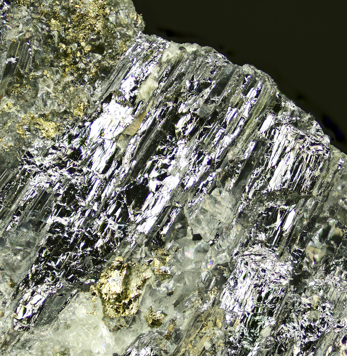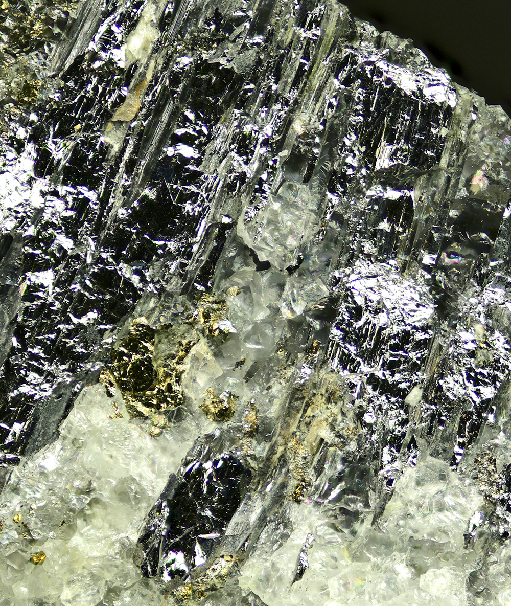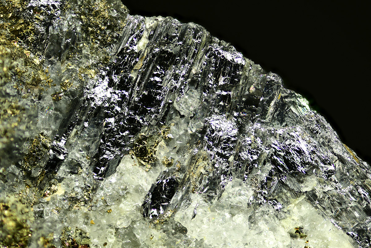 Shiny,whitish-grey Eclarite blades on quartz matrix from the Type Locality..