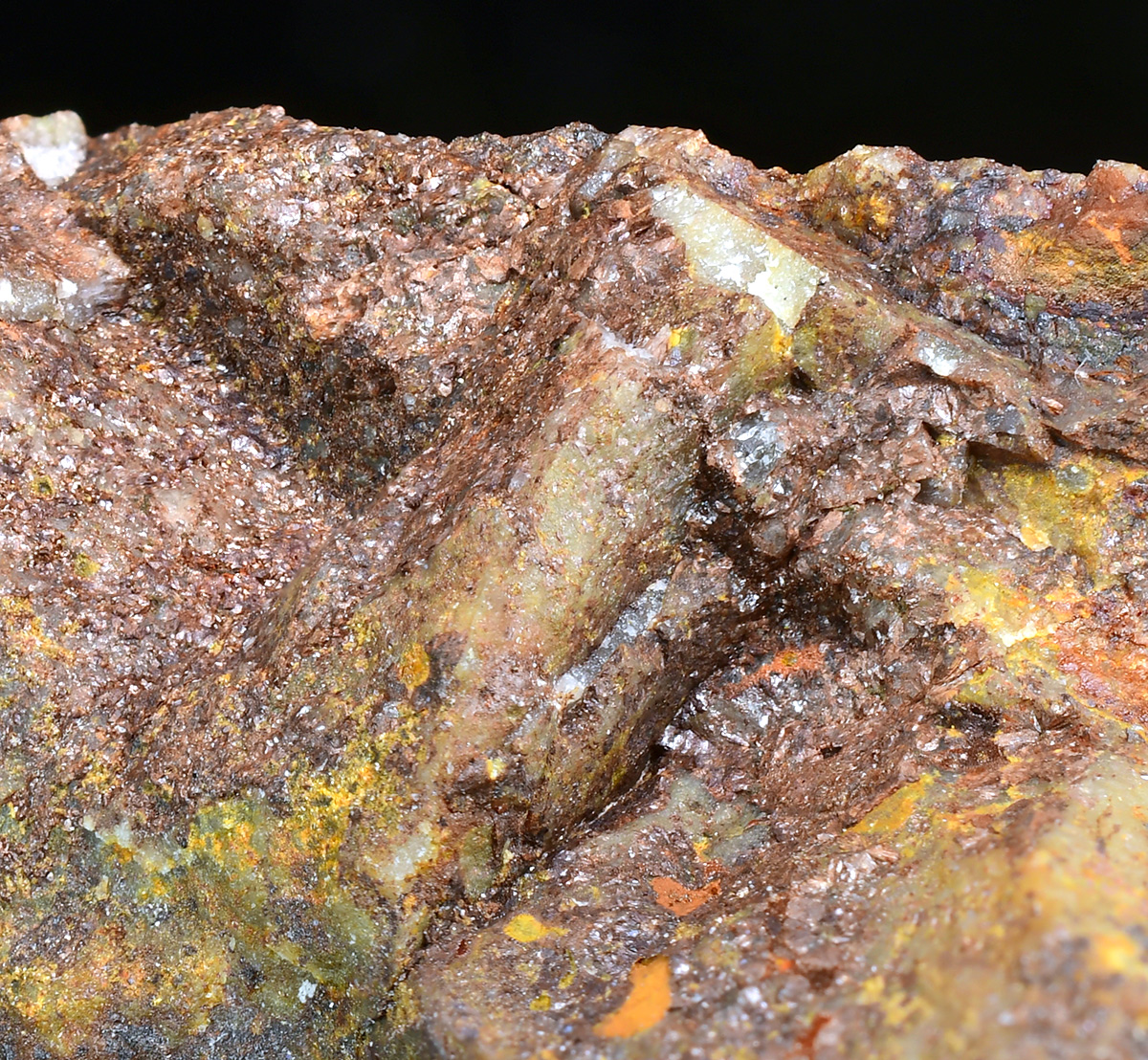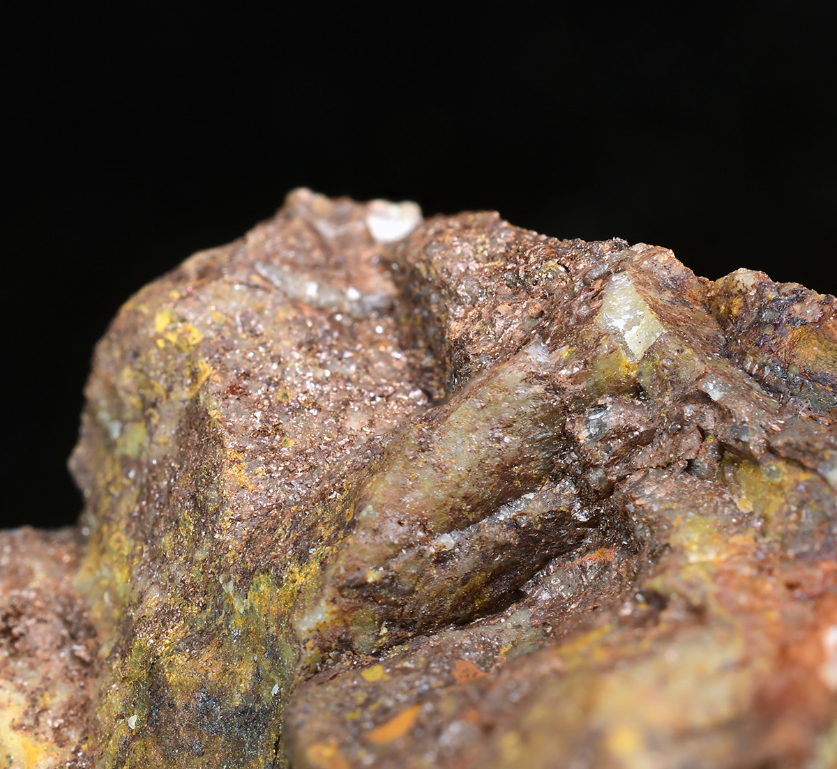 Tiny brown lamellar xocolatlite crystals from the type locality.