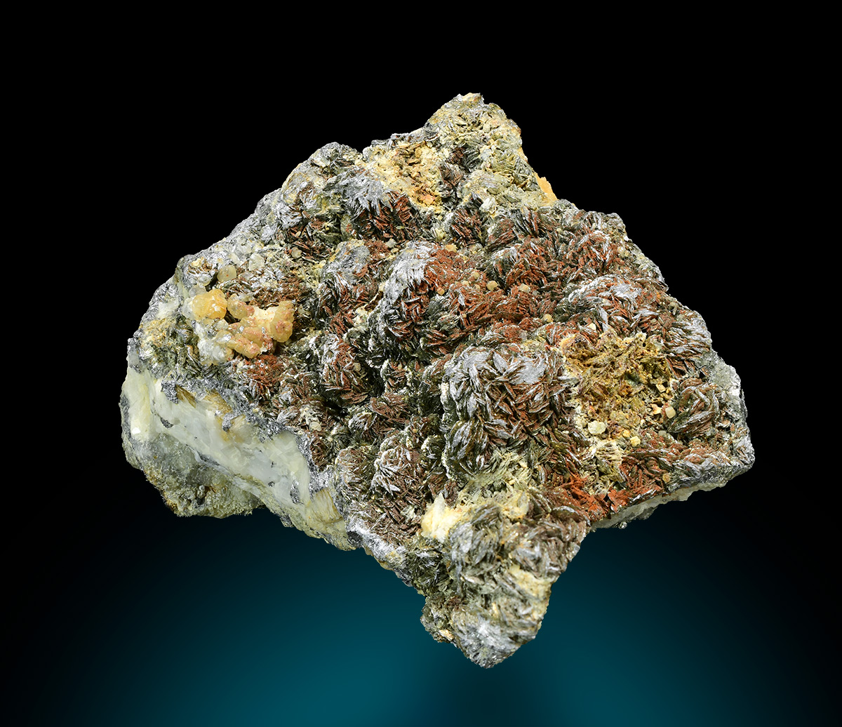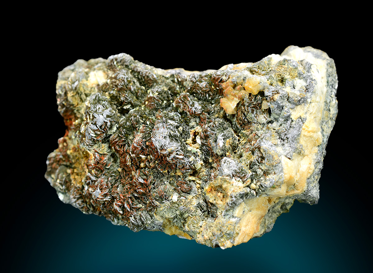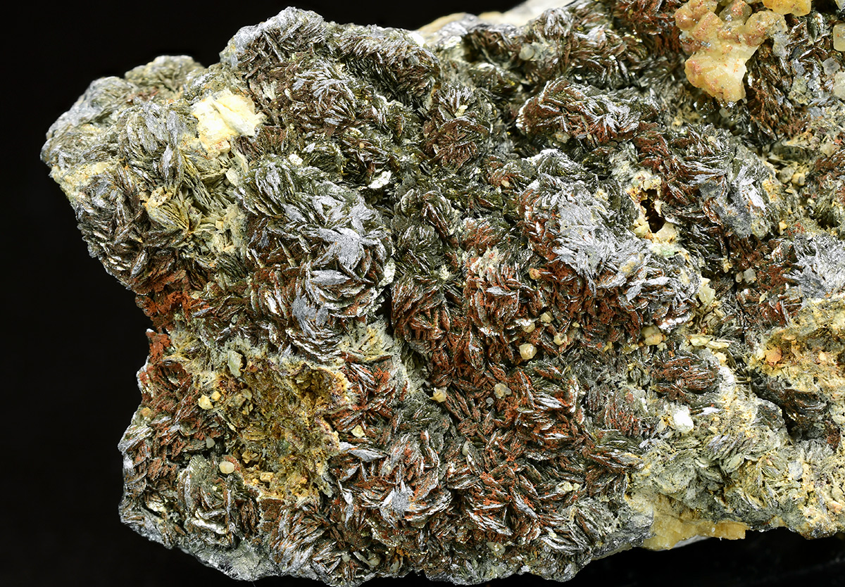 Cluster of metallic lead grey Lollingite crystals up to 1.2 mm n rosettes richly cover the matrix. Well-crystallized Alpine löllingite is very rare in the first place. In Italy, the best specimens came from this Piedmont locality, two small mine adits. Only a handful of specimens were recovered across the years, and the locality is practically defunct. This specimen is a very good representation of what the mine once provided.