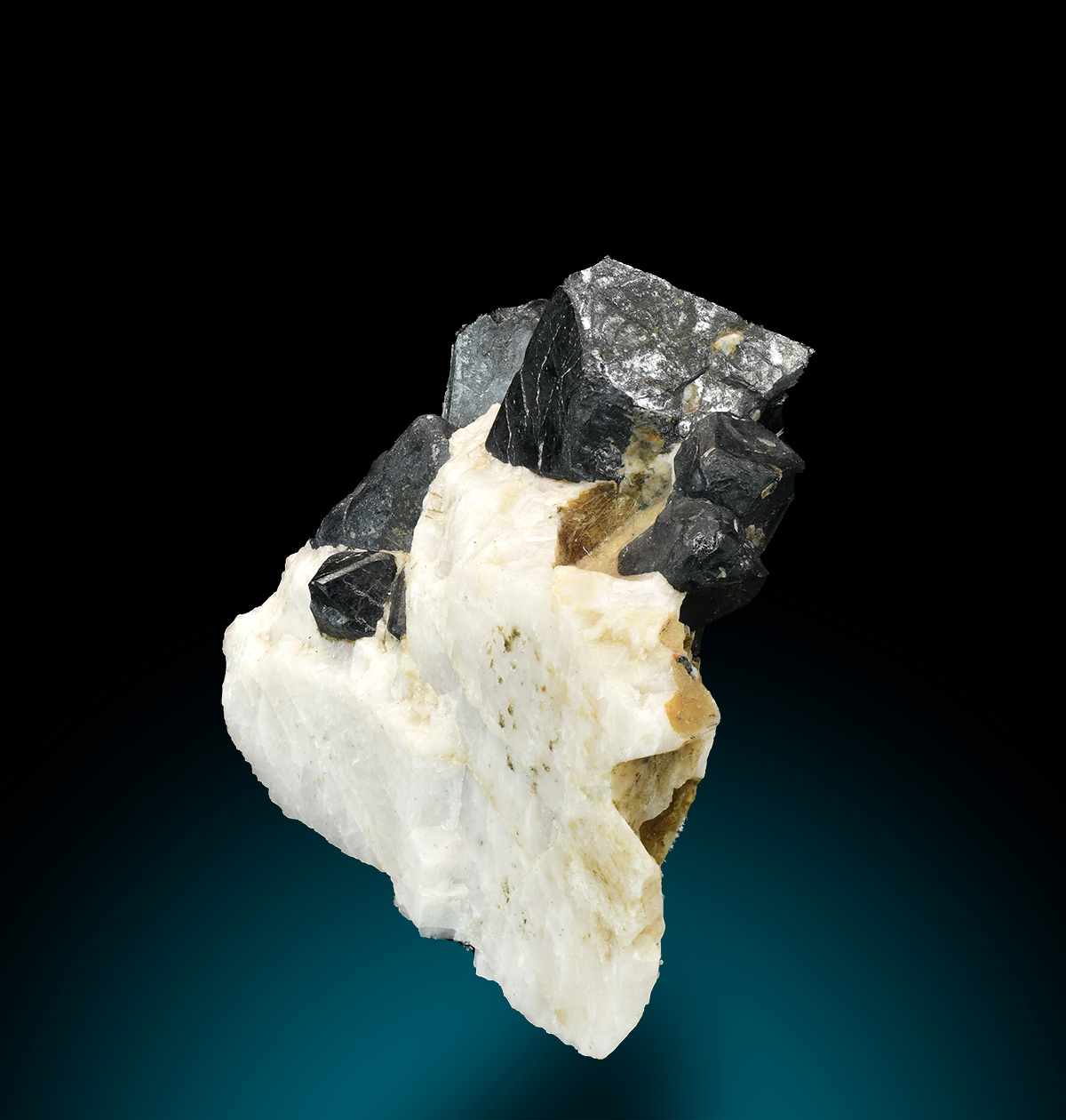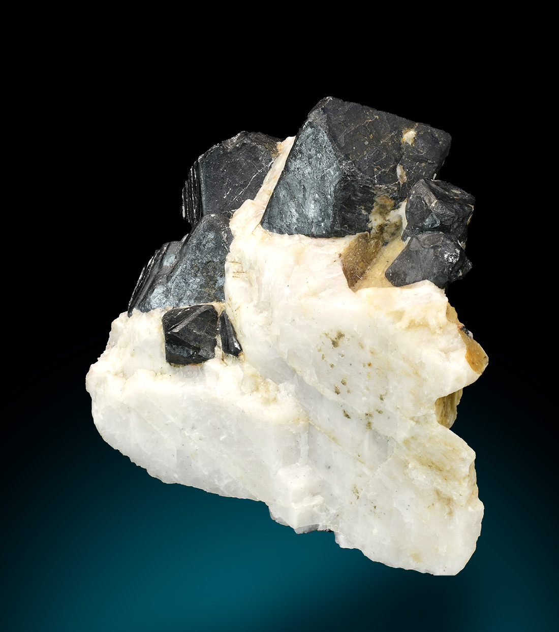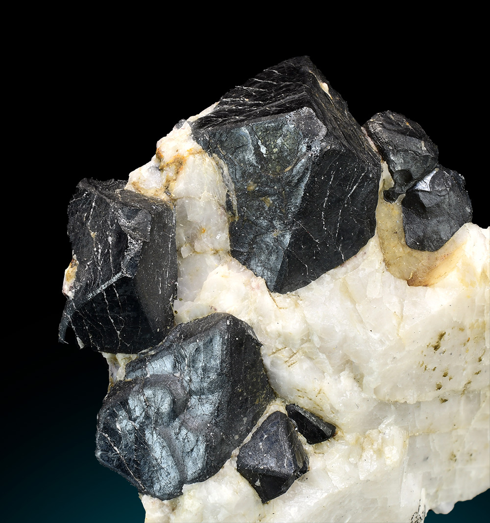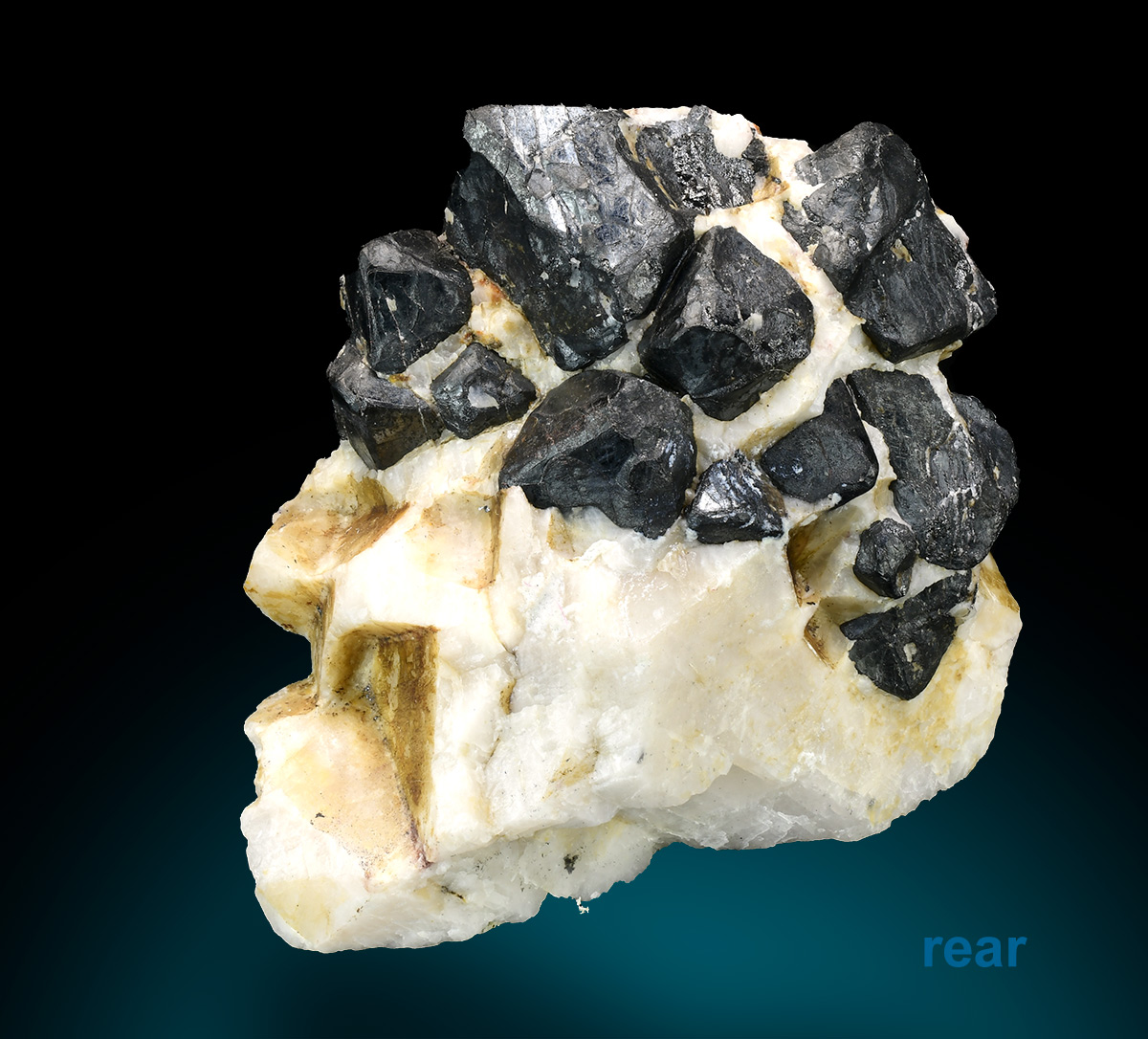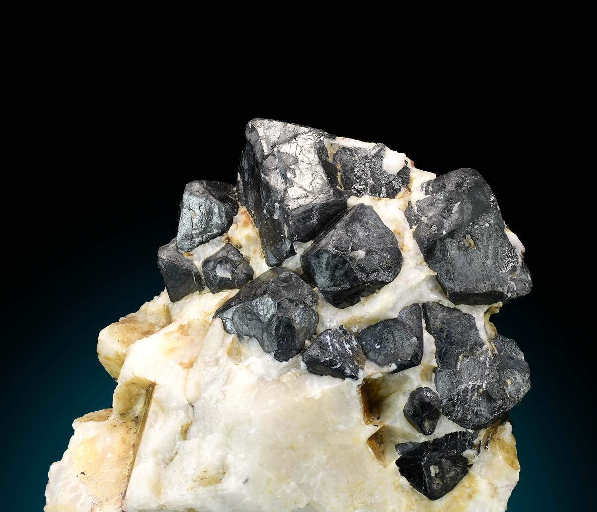 Cluster of octahedral xls of Franklinite up to 1,7 cm with on calcite matrix. A classic from the type locality.
