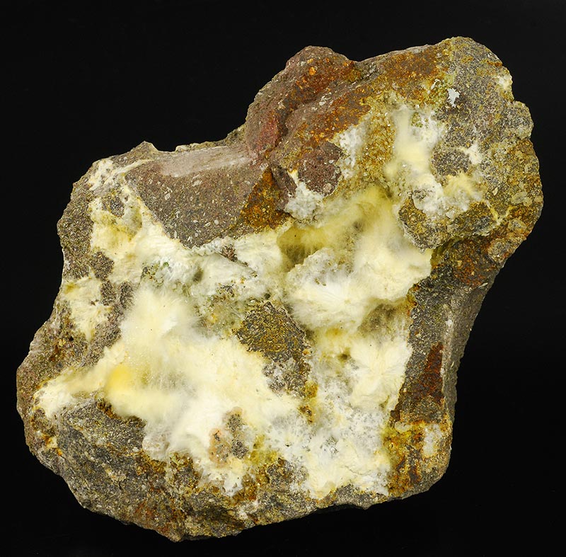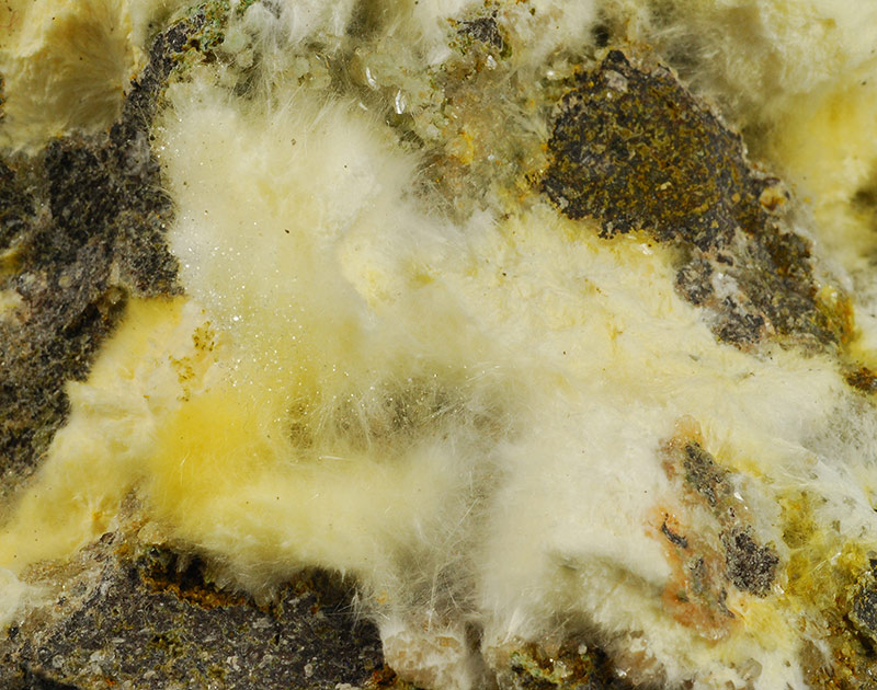 Several cottony tufts of white mordenite cover almost entirely, but in a chaotic manner, the surface of this Sardinian specimen.