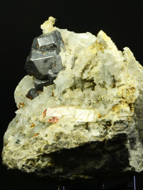 Galena in lustruous octahedra, well exposed on matrix, from a recent small finding at an unusual italian locale that produced some of the finest italian galena. A small transparent quartz xl is a nice ad.