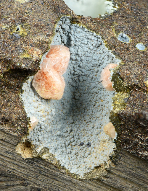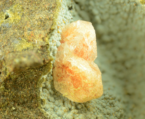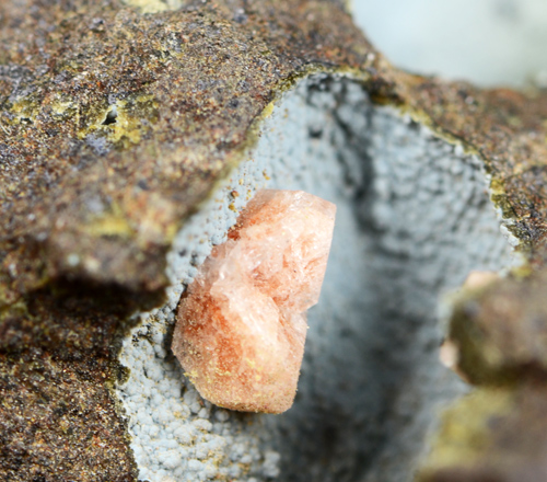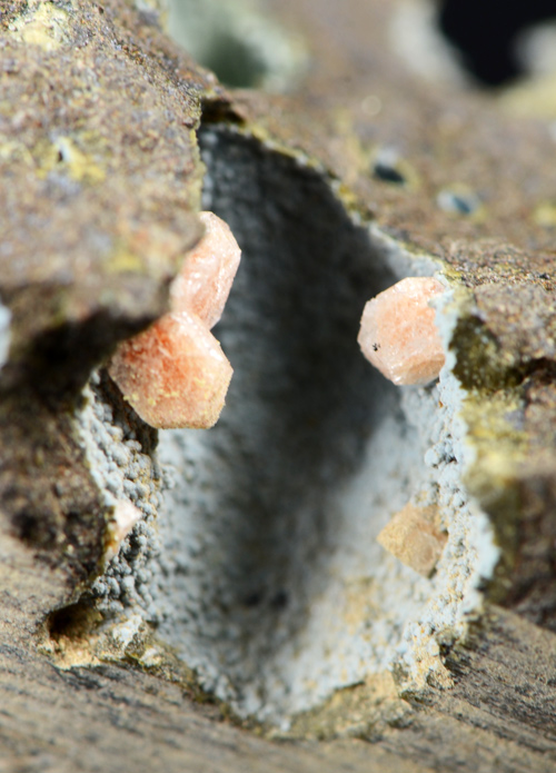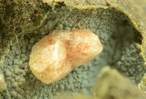 Clean orange xls of Phillipsite aesthetically set inside a vug in the basaltic matrix. Classic italian zeolite.