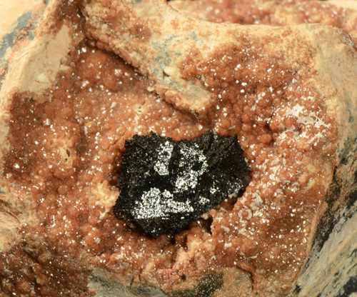 Hausmannite on Andradite - N'Chwaning II Mine, Kuruman, Kalahari manganese fields, Northern Cape Province, South Africa (#:FERR1516)