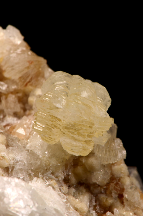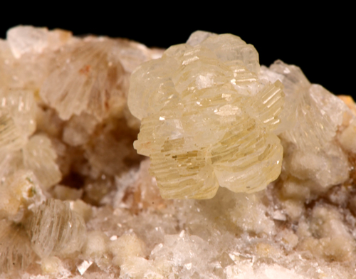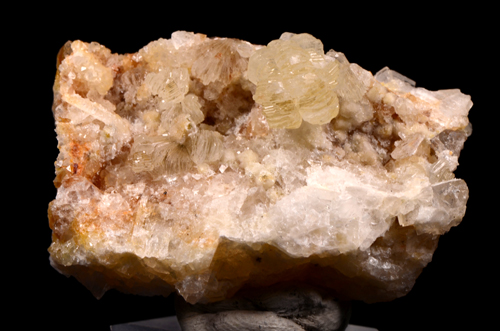 Fine group of colorless xls of Hemimorphite, grouped in a typical rosette, aesthetically set on a base of quartz.
