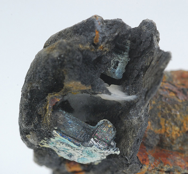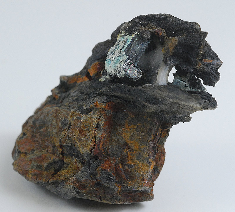 Some black crystals of bournonite are visible inside the vug of this specimen: this specie is not common in this alpine locality, but it's classic !