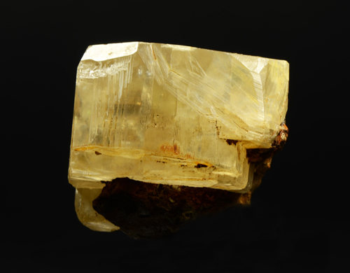 Fine single Xl of honey yellow Phosgenite with a small bit of matrix. One of the most known and appreciated italian classics! From one of the most known italian mines today definitely closed and floaded. Formerly in the Palmas collection, Villamassargia, Italy.