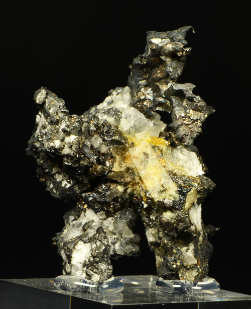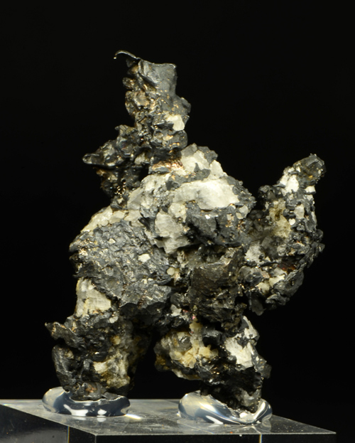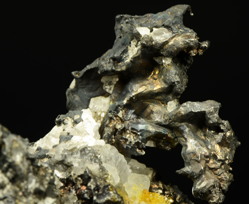Oldtimer of native Silver from one of the most famous locales for this highly sought after specie. This specimen consists of thick wires of Silver, with very nice ancient patine, on a matrix of massive Calcite. Some crystals faces can be seen in the wires.