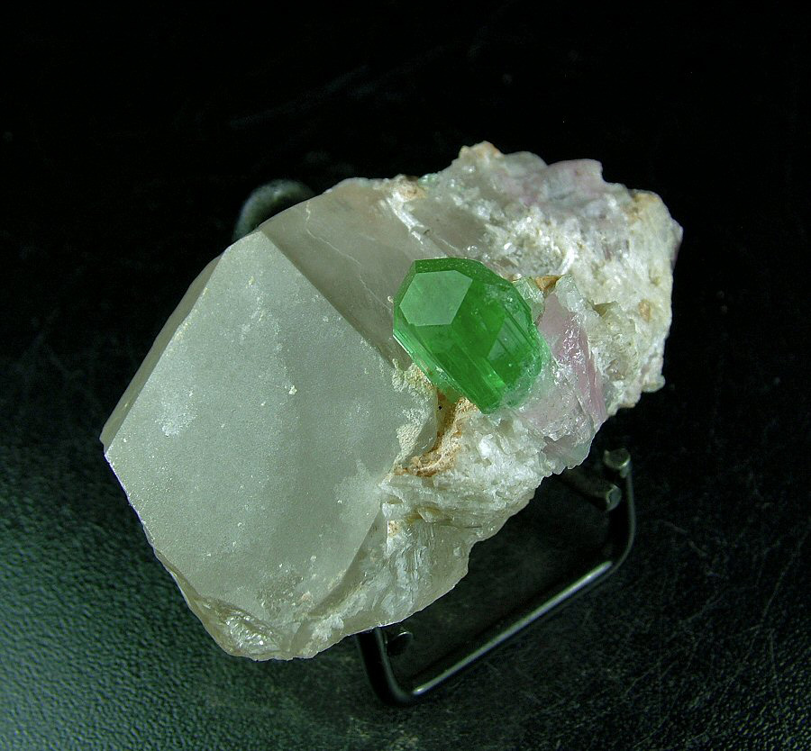 Wonderful Elbaite's crystal, with color from pink (at the base) to light green (on the top), well terminated, translucent and gemmy, implanted on a Quartz's crystal. With two cuts, on the base and on one side, that are not so visible.