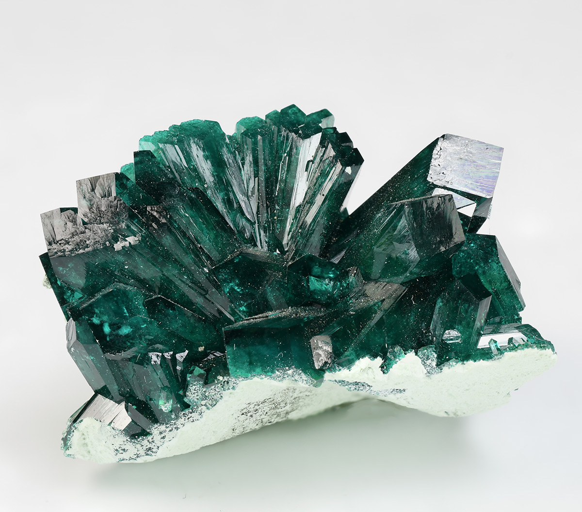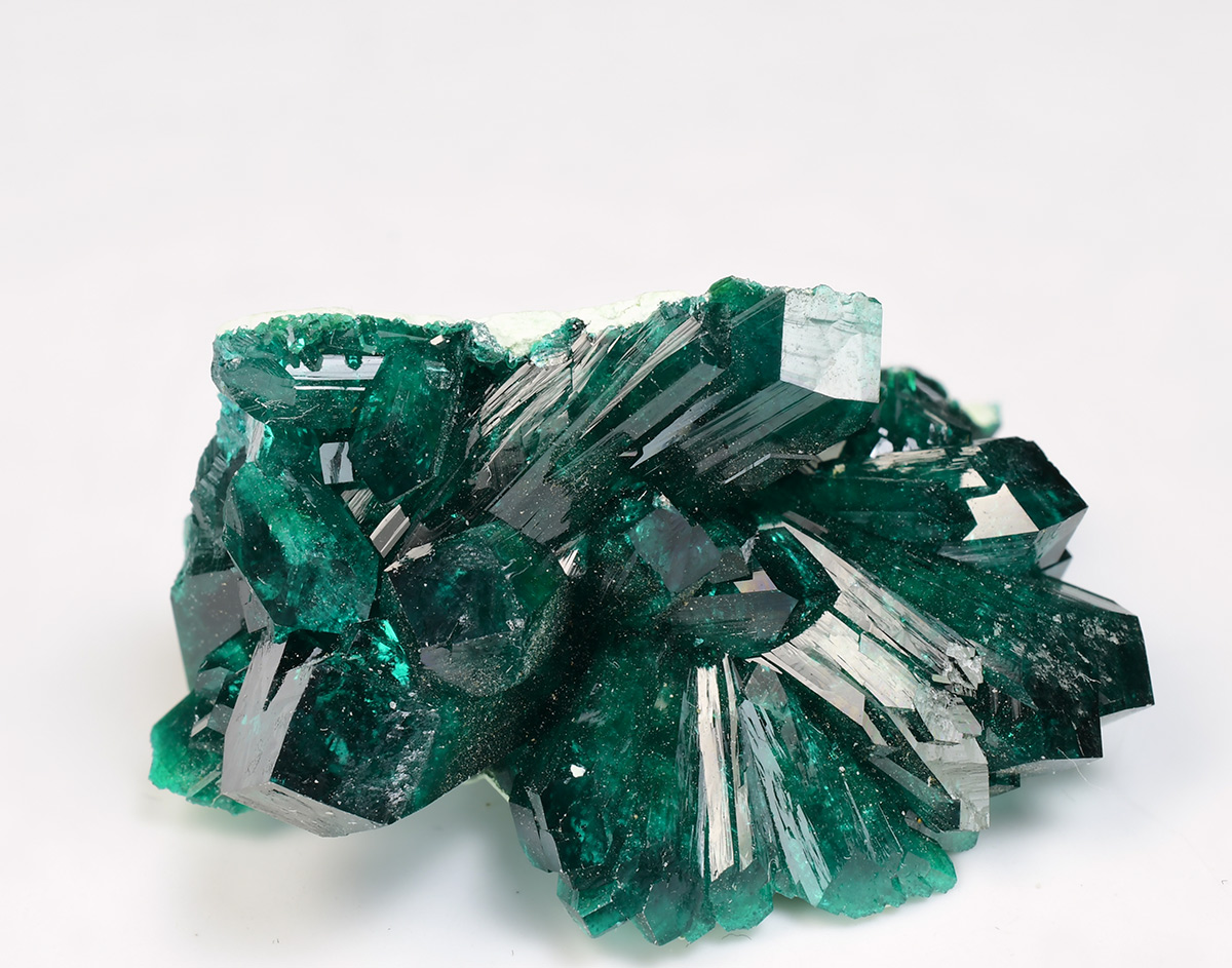 A fine thumb of Dioptase crystals representative of this classic locality. The crystals , up to 1,0 cm long, have superb luster and a rich deep green color.