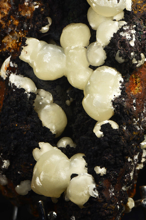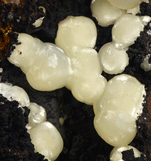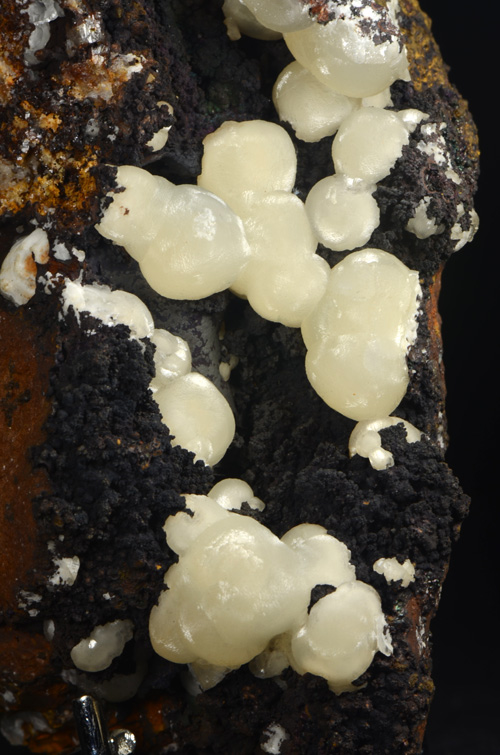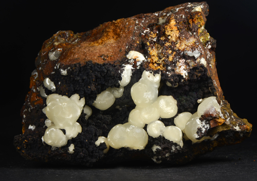 Fine druse with bothryoidal bubbles of pearl white Smithsonite, very brilliant and well contrasting against the gossan matrix. From some recent limited findings at this classic mine, closed since decades. Showy!