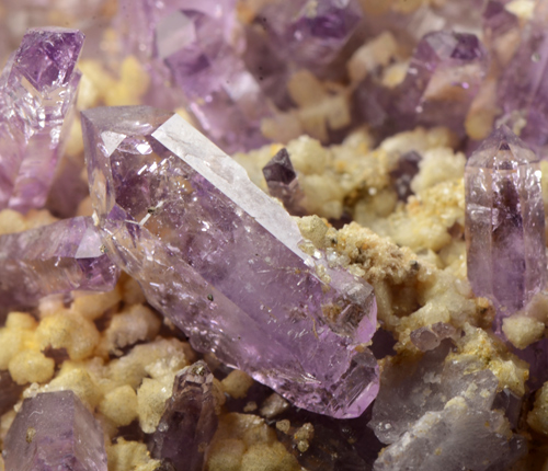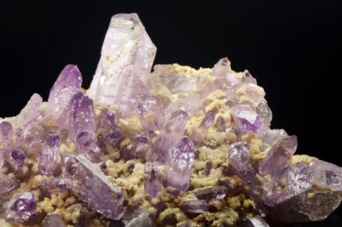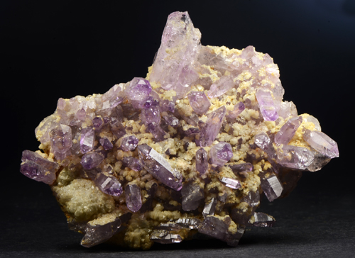 Cluster of Amethysts from the old workings at the Osilo Quarry, featuring lots of xls with good violet colour, luster and typical internal hoppering. Showy!
