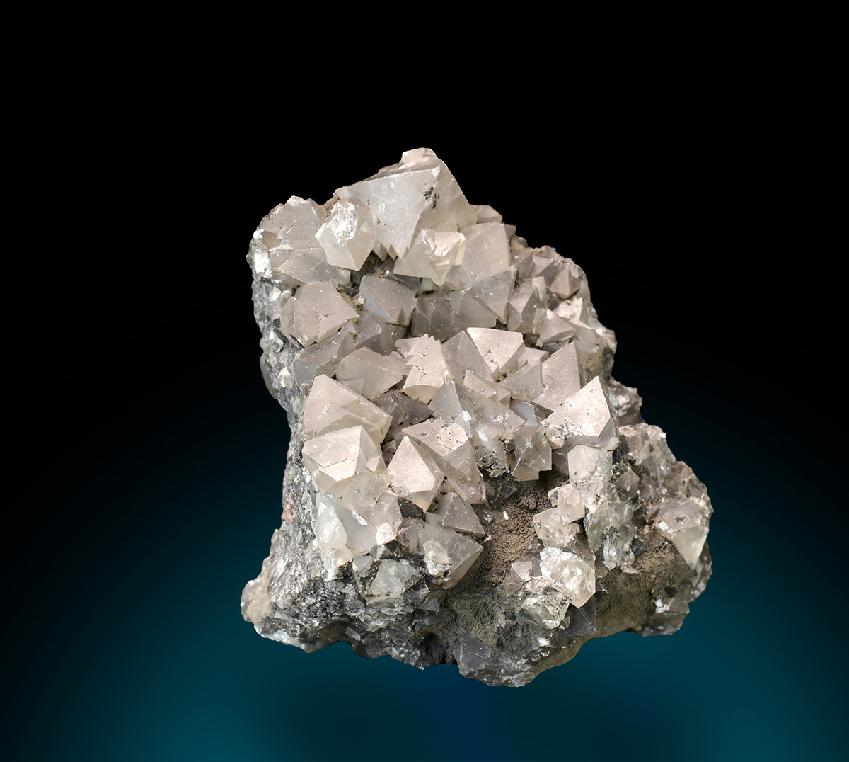 Cluster of rare Senarmontite in octahedral crystals up to 4 mm richly set on matrix from the type locality.