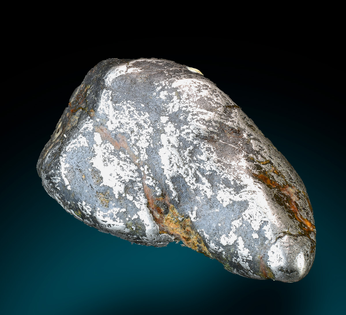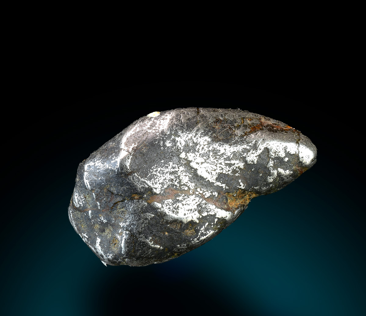 Silvery-bright, flattened alluvial thumbnail Awaruite nugget from the Josephine Creek placers of Oregon (Arlson & Co. placers). Awariute is an intermetallic alloy of Nickel and Iron. The ultramafic and ophiolite placer Au-Ni-PGE (Pt-Ir)-Cr-Fe deposits in the area have been worked intermittently since 1852 (MINDAT). It was originally called "Josephinite" for its type locality in Oregon and is strongly magnetic.. Seldom on the market and a fine example of the uncommon species.