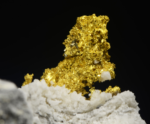 A mass of native Gold is very well exposed on a chunk of matrix. The Gold spot covers an area of around 2 cm. Native gold is not that common in Italy and the Brusson mone is the best known locale for it. Excellent locality sample!