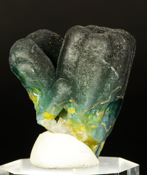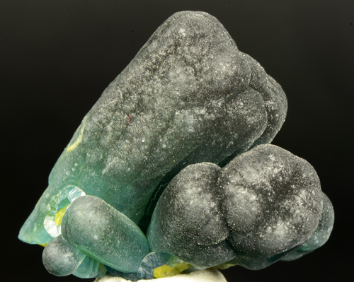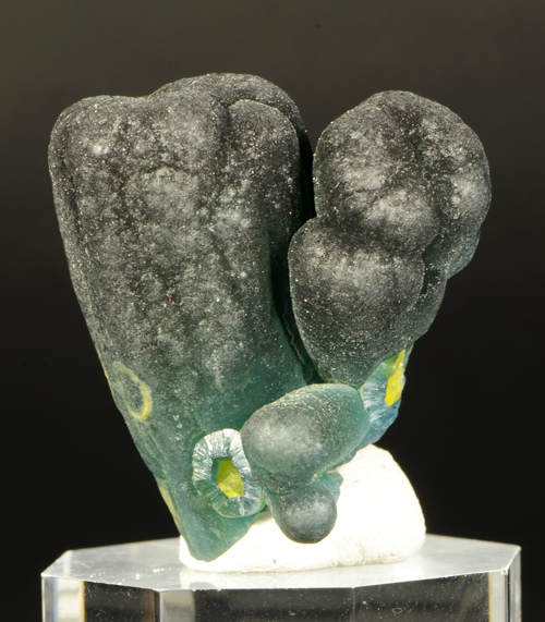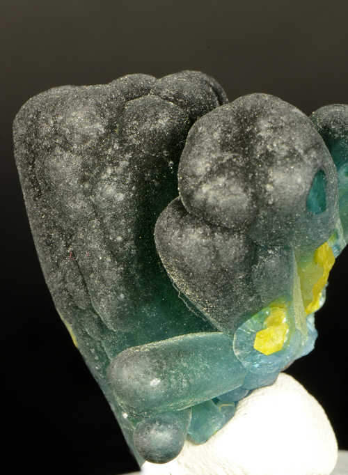 Fantastic cluster of Plumbogummite in thick blue colour encrusting Yellow pyromorphite. Stunning luster. From a recent find at the mine that set new standards for this showy but rare specie!