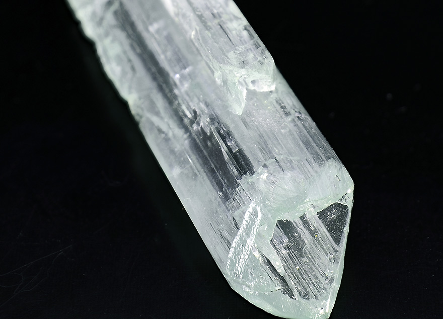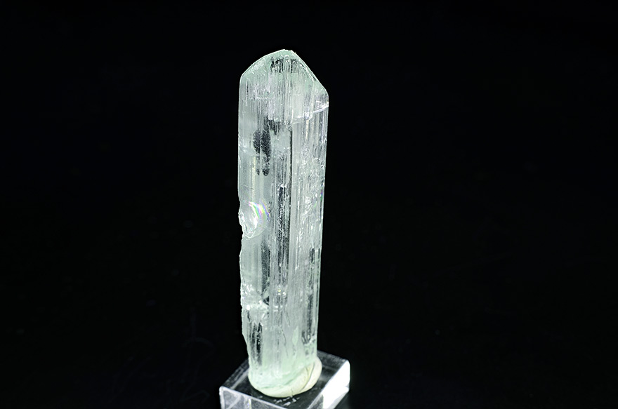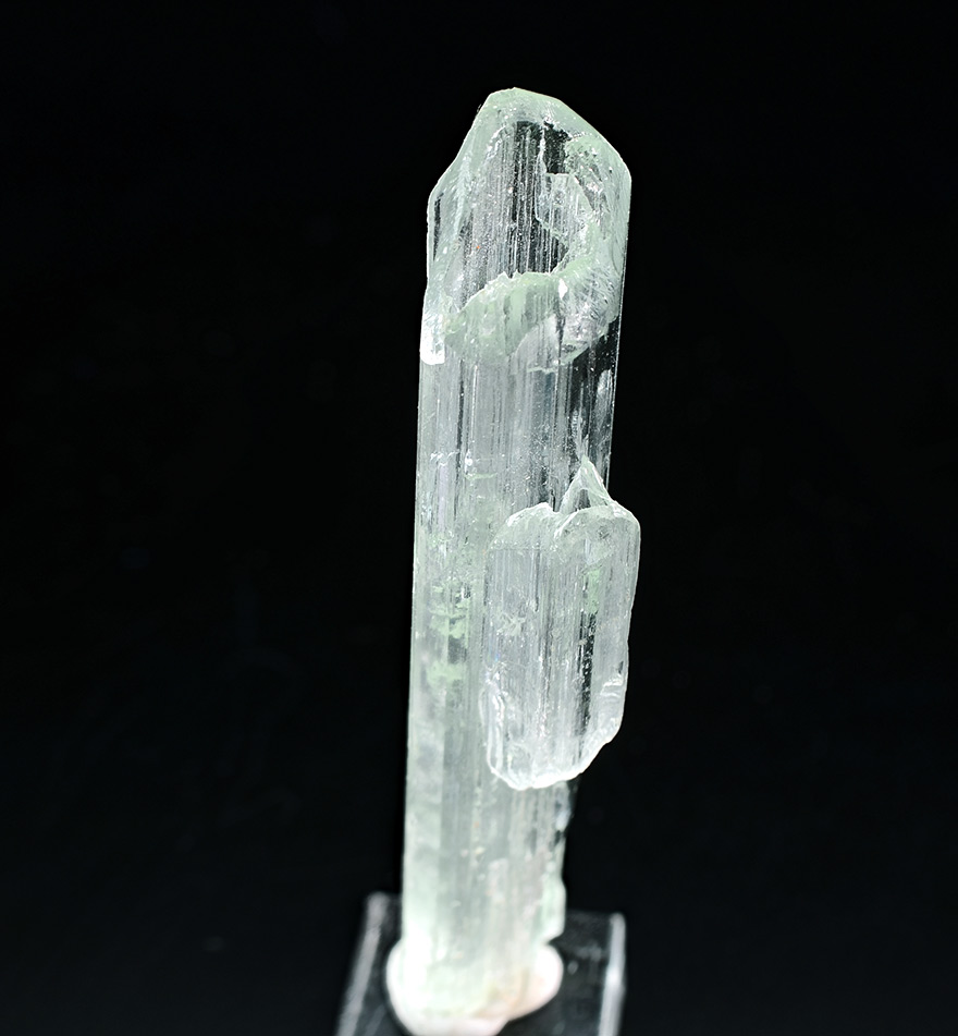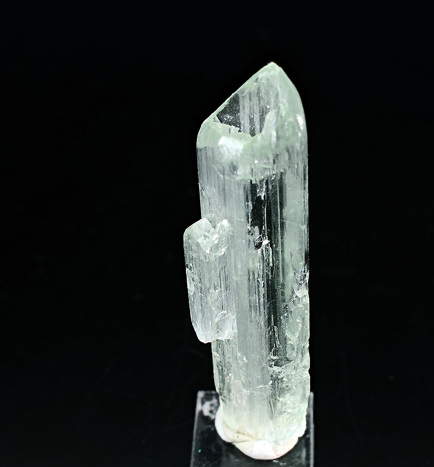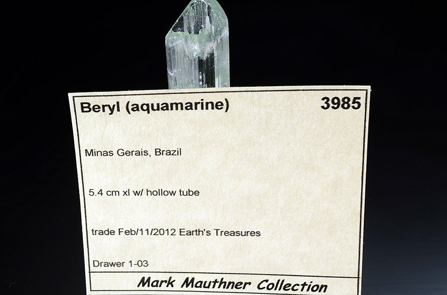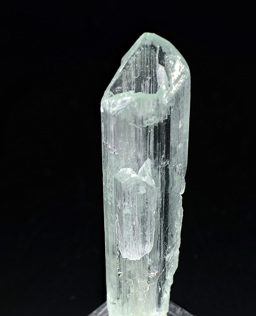 Well shaped Aquamarine xl 5,4 cm tall with rare hollow crystallisation on the top and over total lenght of the crystal. Showy.