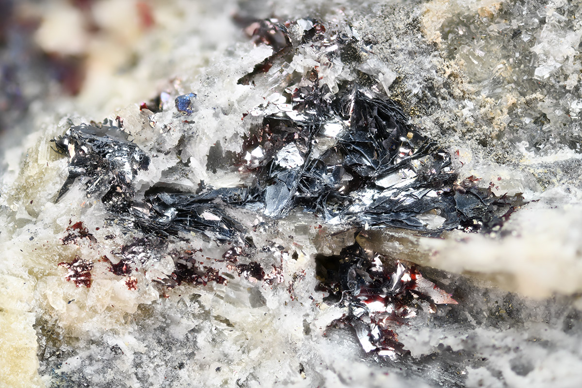 Cluster of trigonal lamellar crystals of very rare Fettelite up to 1 mm with internal red color from the type locality.Former Sandro Maggia coll. with original label.