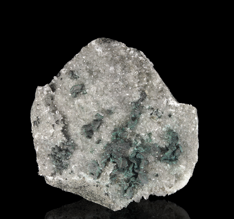 Very nice classic chalcocite xx on quartz xx matrix with minor malachite.