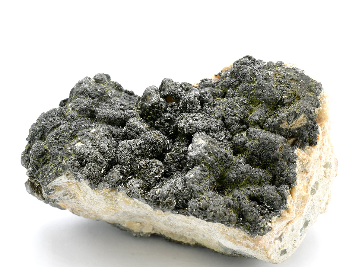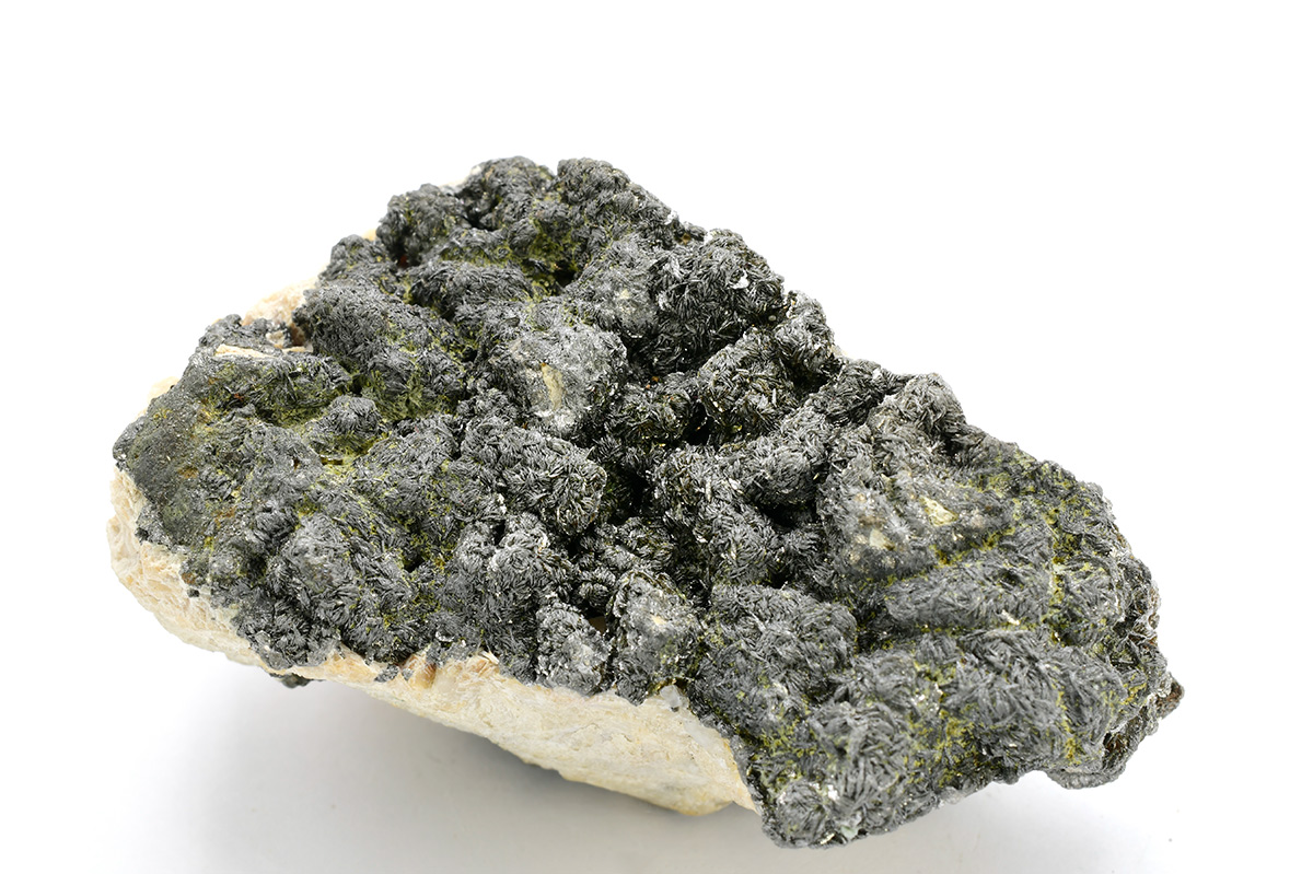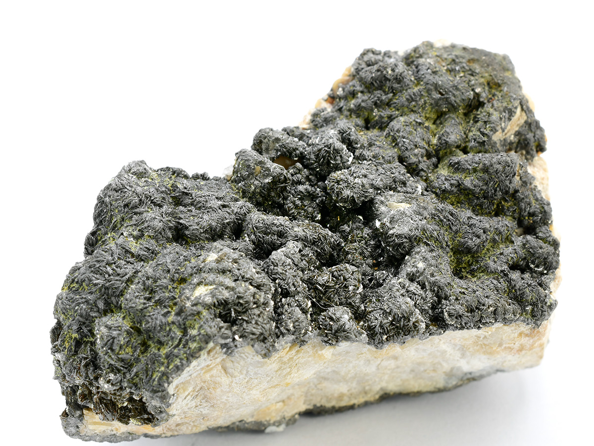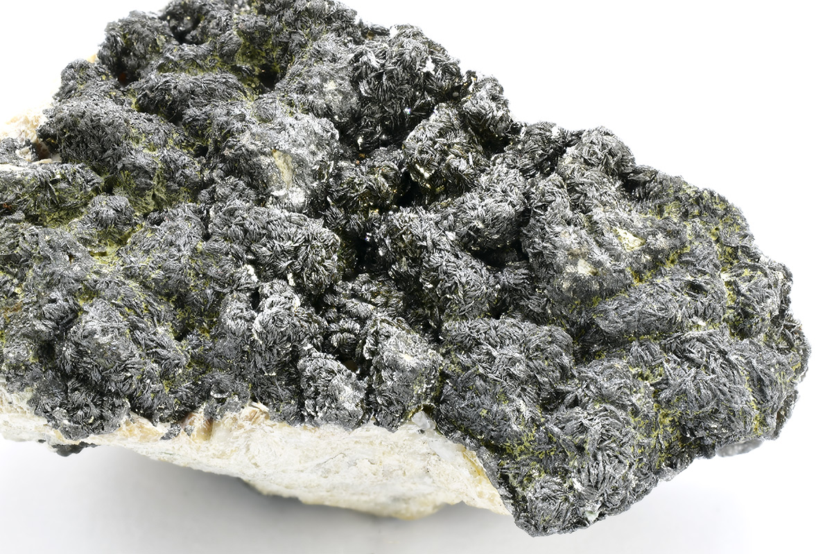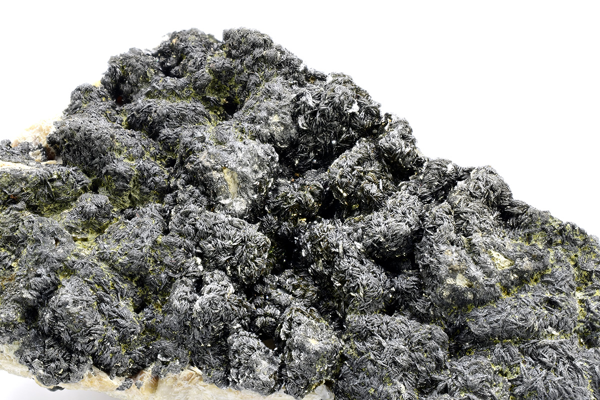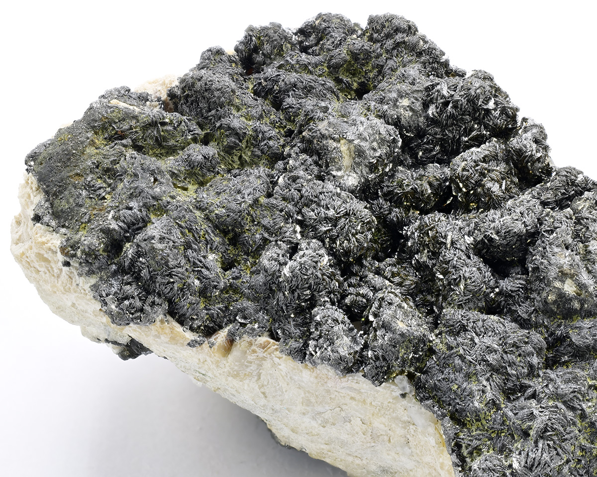 Cluster of metallic lead grey Lollingite crystals in rosettes up to 5 mm richly cover the matrix. Well-crystallized Alpine löllingite is very rare in the first place. In Italy, the best specimens came from this Piedmont locality, two small mine adits. Only a handful of specimens were recovered across the years, and the locality is practically defunct. This specimen is a very good representation of what the mine once provided.