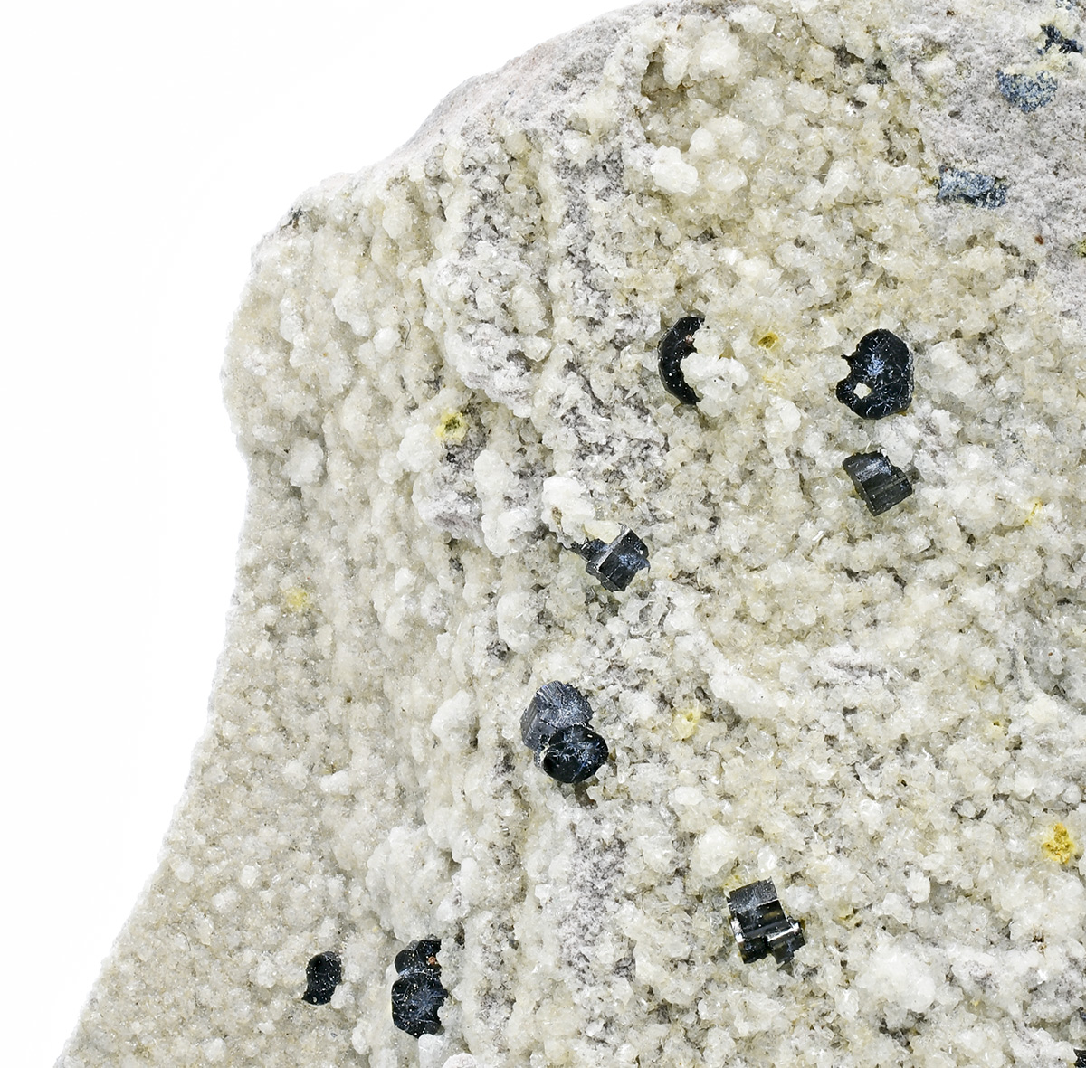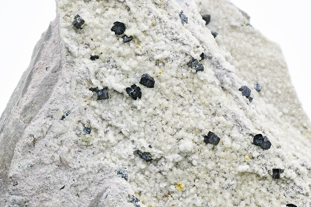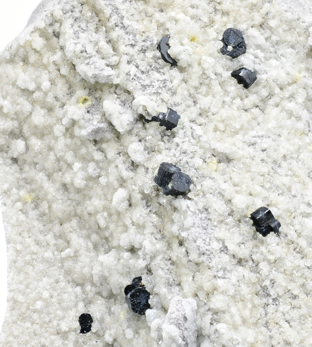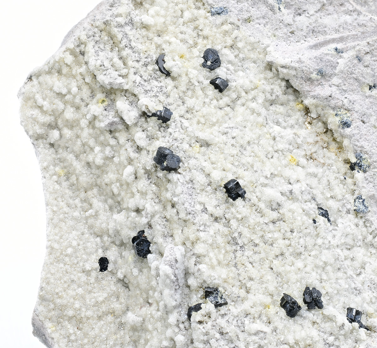 Cluster of shiny blacks tabular Osumilite crystals up to 2 mm set on contrasting matrix.