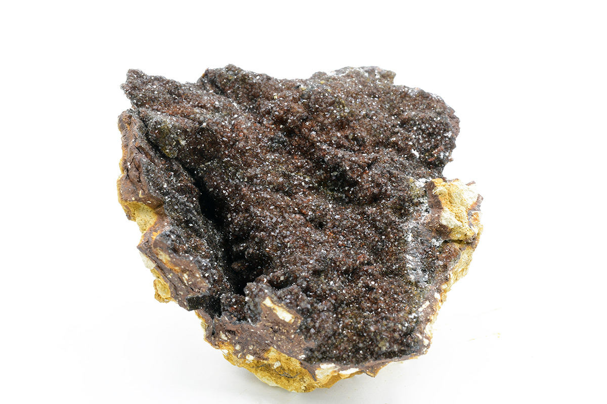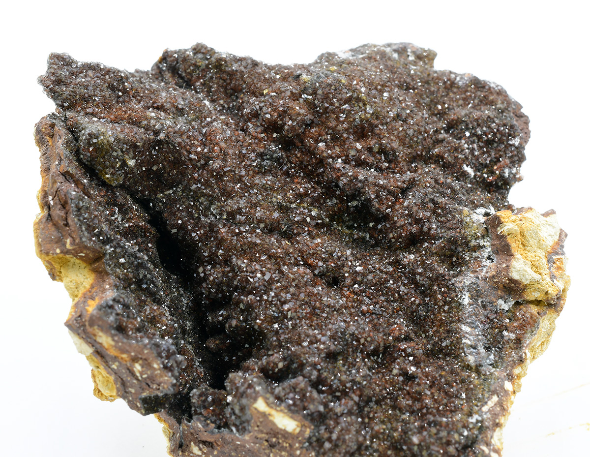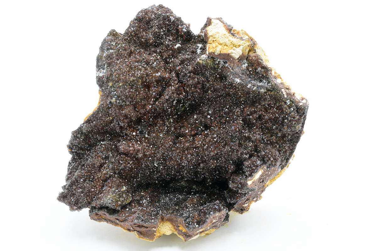 Fluellite is a rare hydrated phosphate. This active open pit phosphate mine is well-known for a wide variety of rare and unusual phosphates. Specimens of this size and richness are very uncommon from here. Scintillating, gemmy colorless, to oxide-tinted, orthorhombic microcrystals set richly on limonitic/kingiticmatrix.From the Robert Noble collection.