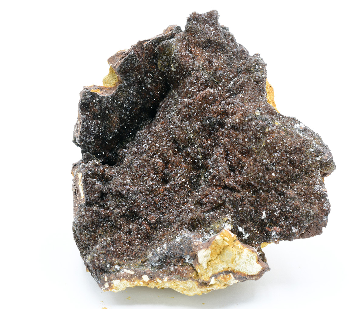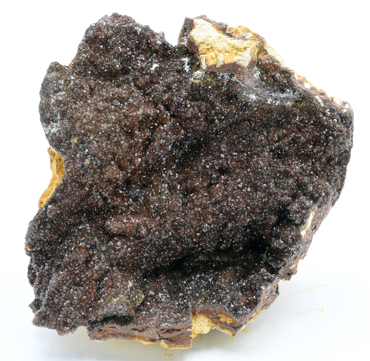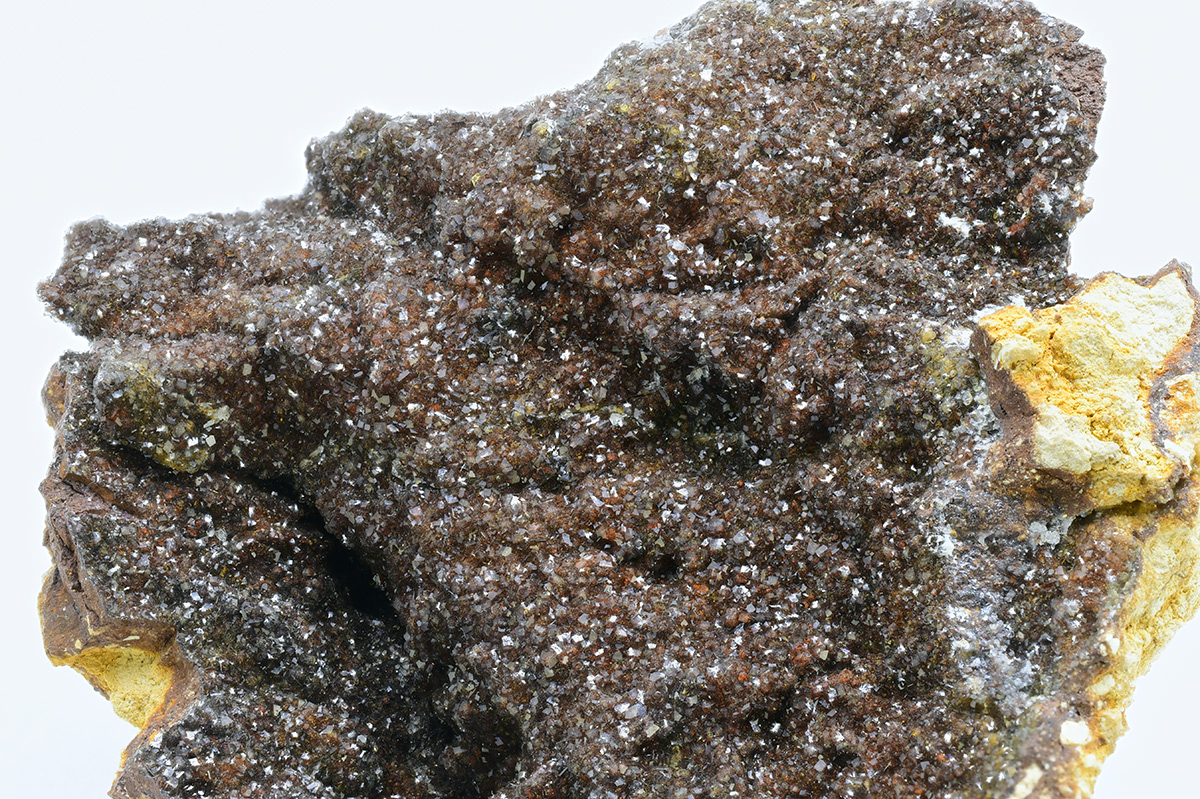 Fluellite is a rare hydrated phosphate. This active open pit phosphate mine is well-known for a wide variety of rare and unusual phosphates. Specimens of this size and richness are very uncommon from here. Scintillating, gemmy colorless, to oxide-tinted, orthorhombic microcrystals set richly on limonitic/kingiticmatrix.From the Robert Noble collection.