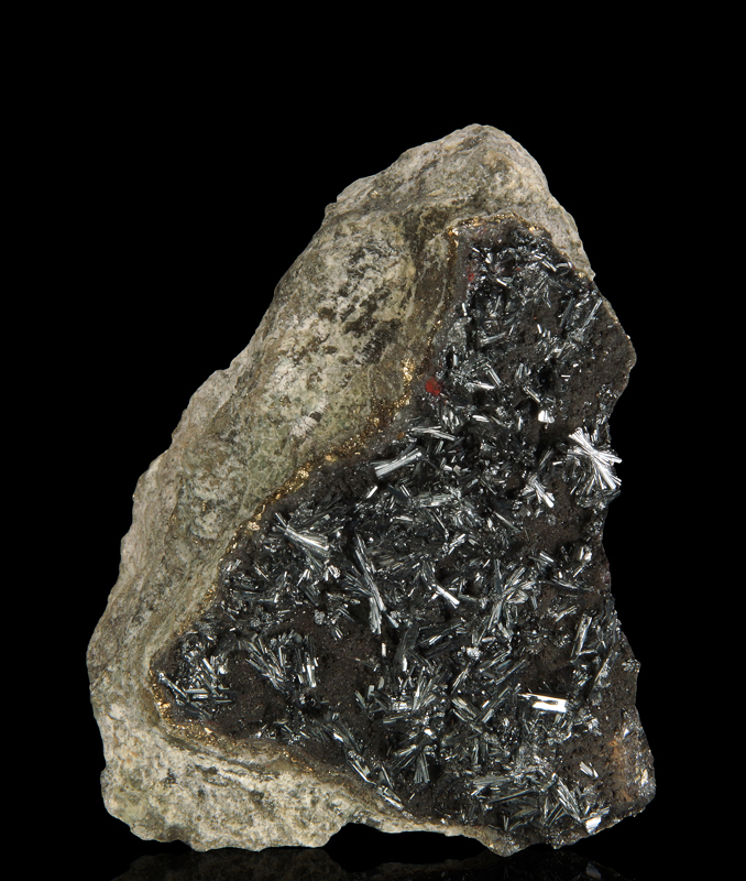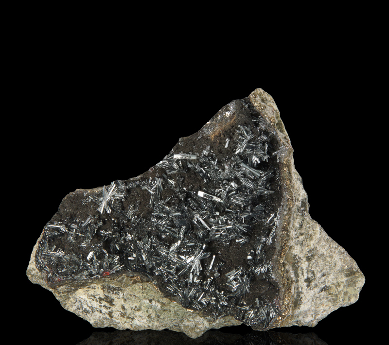 Superb metallic hutchinsonite xx of very high luster on matrix.