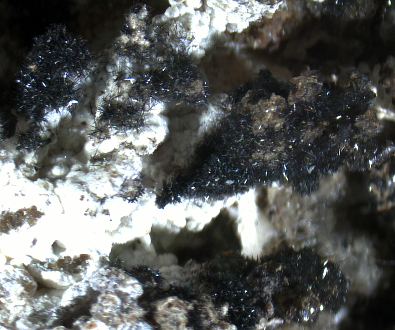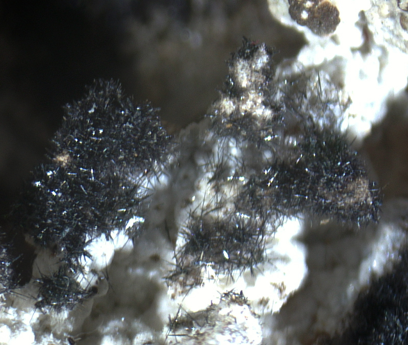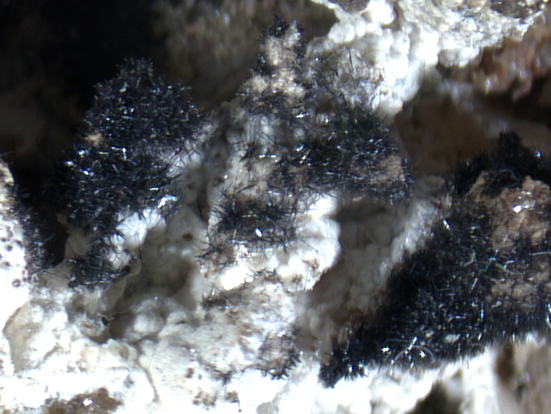 Nice black acicular plattnerite on smithsonite.