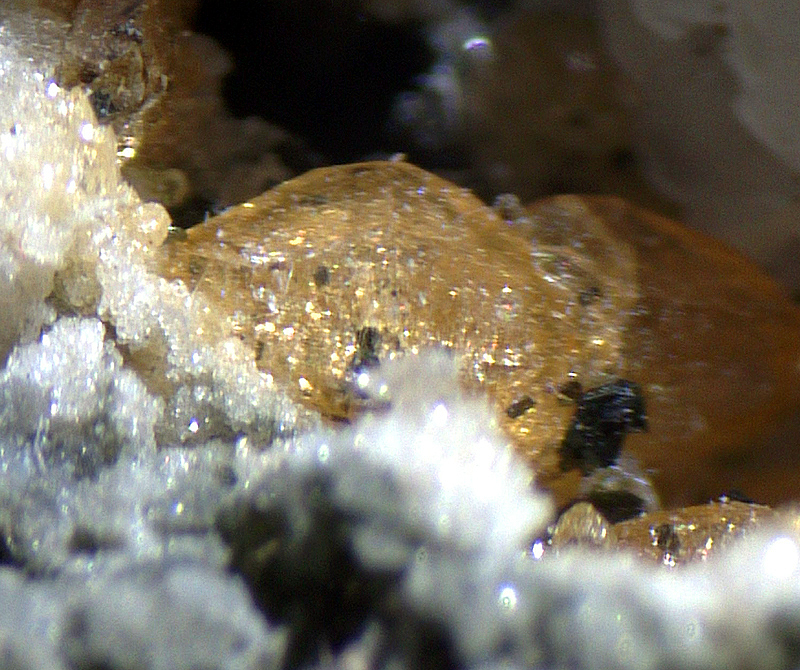 Nice golden Humite xx with black Spinel and glassy Sodalite (w)